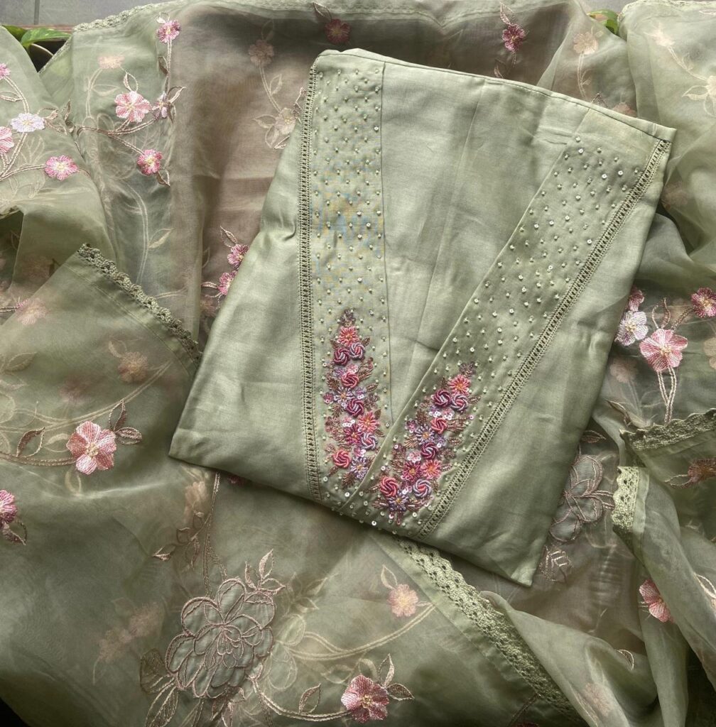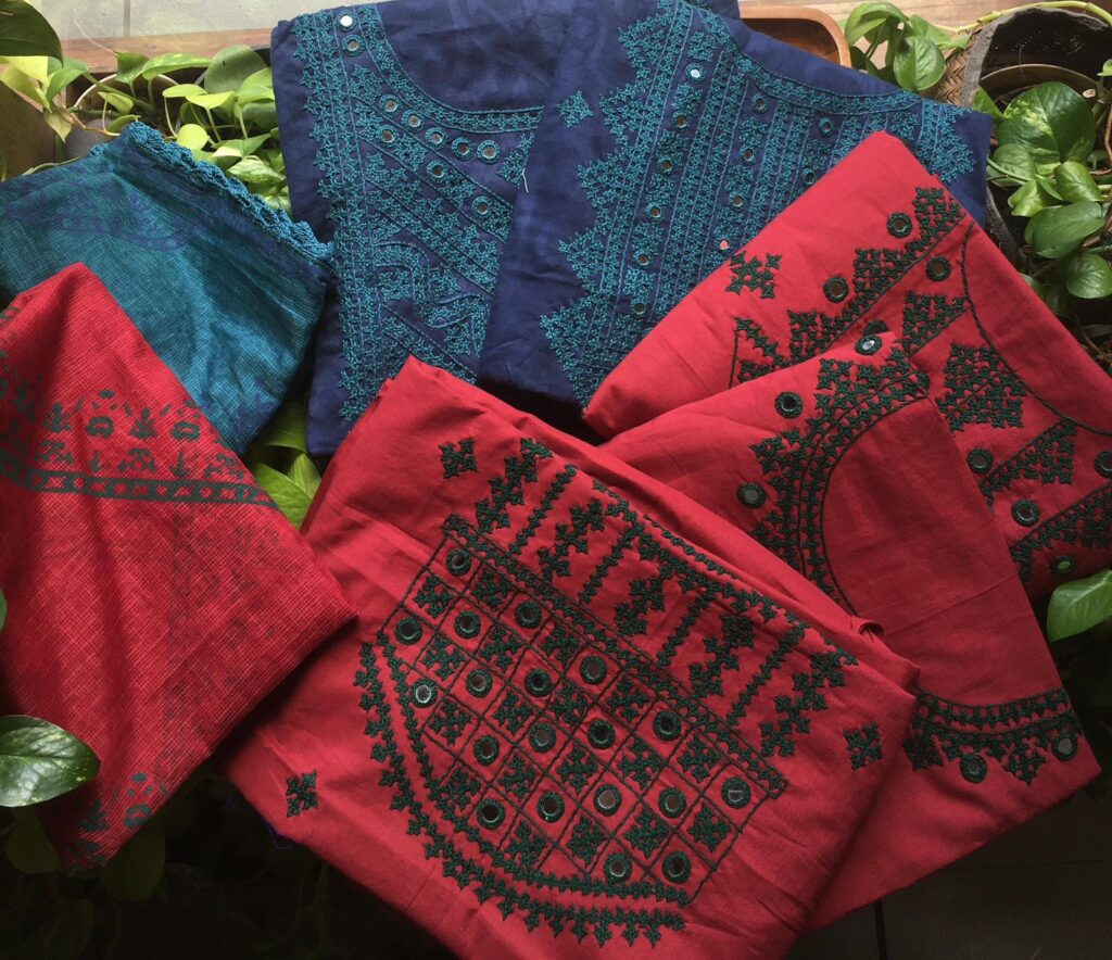 Stunningly Beautiful Kutch Worked Chandheri Silk Sets