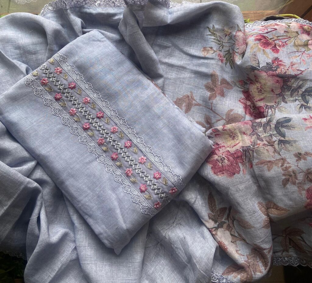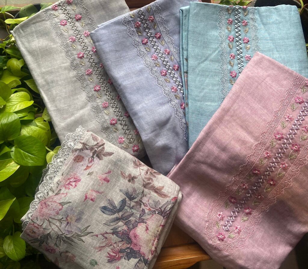 Custom-designed, stitched, and colored apparel tailored for ladies.