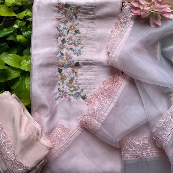 A Beautiful & premium pure viscose organza top & Duppatta with exquisite hand embroidery featuring bullion knots! Santoon bottom