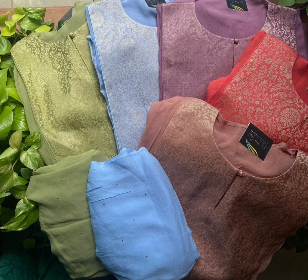 A beautiful premium collection of pure viscose georgette top with stunning Benarasi fabric designed on yoke & sleeves ( The suit is unstitched with all designer detailing done & has to be stitched as per measurements) , santoon bottom & pure chiffon badla Duppatta Dispatch time 5 days