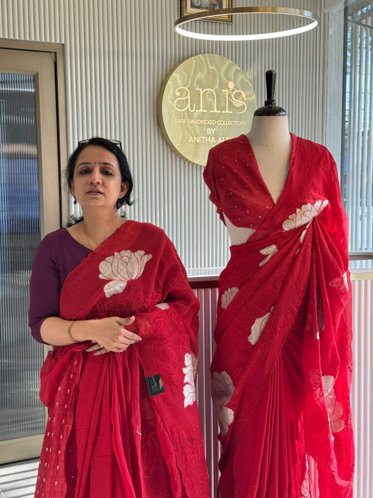 A beautiful collection of Tussar silk sarees with very elegant check weaving on entire saree & borders finished with beautiful cross stitch reminiscent floral embroidery. With blouse pure Benarasi silk