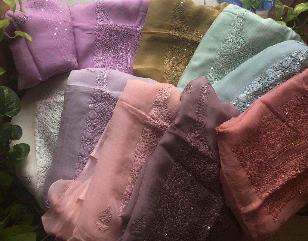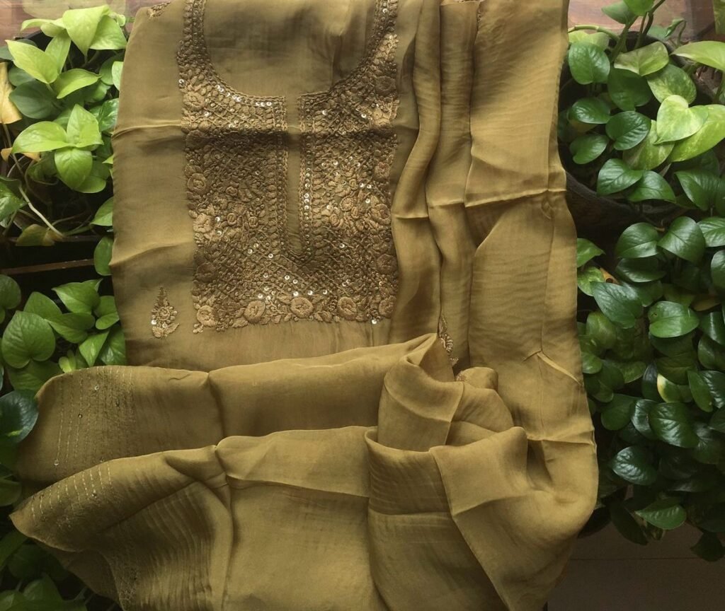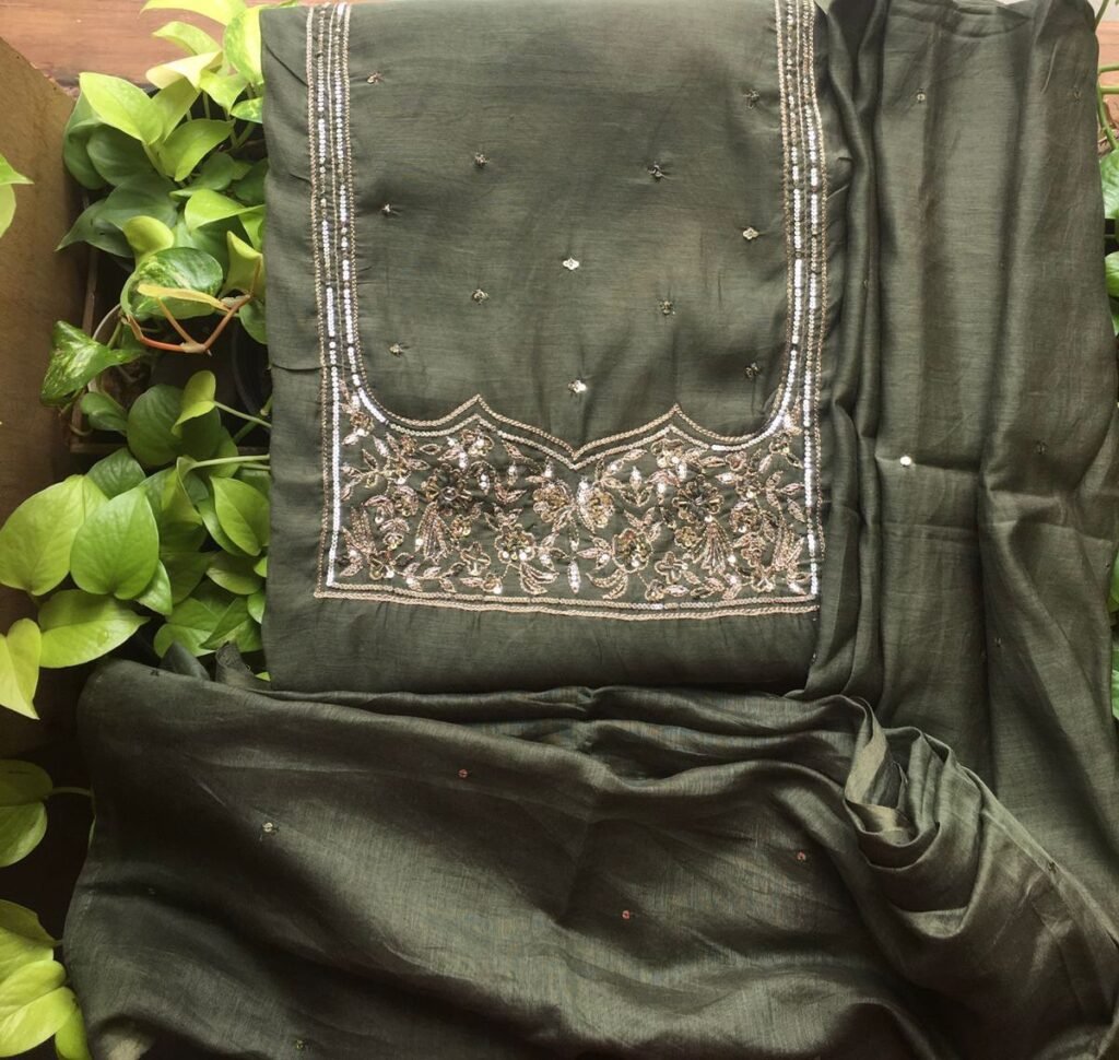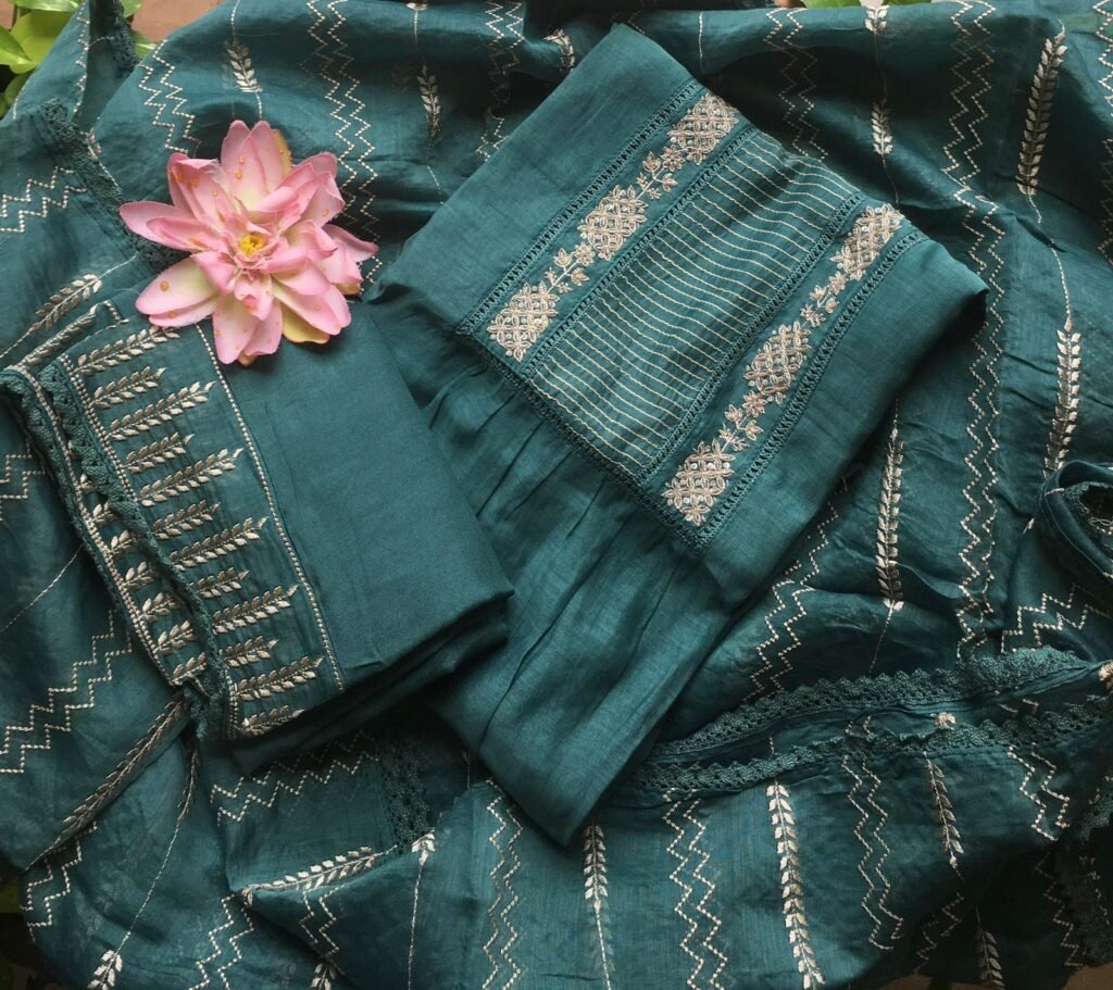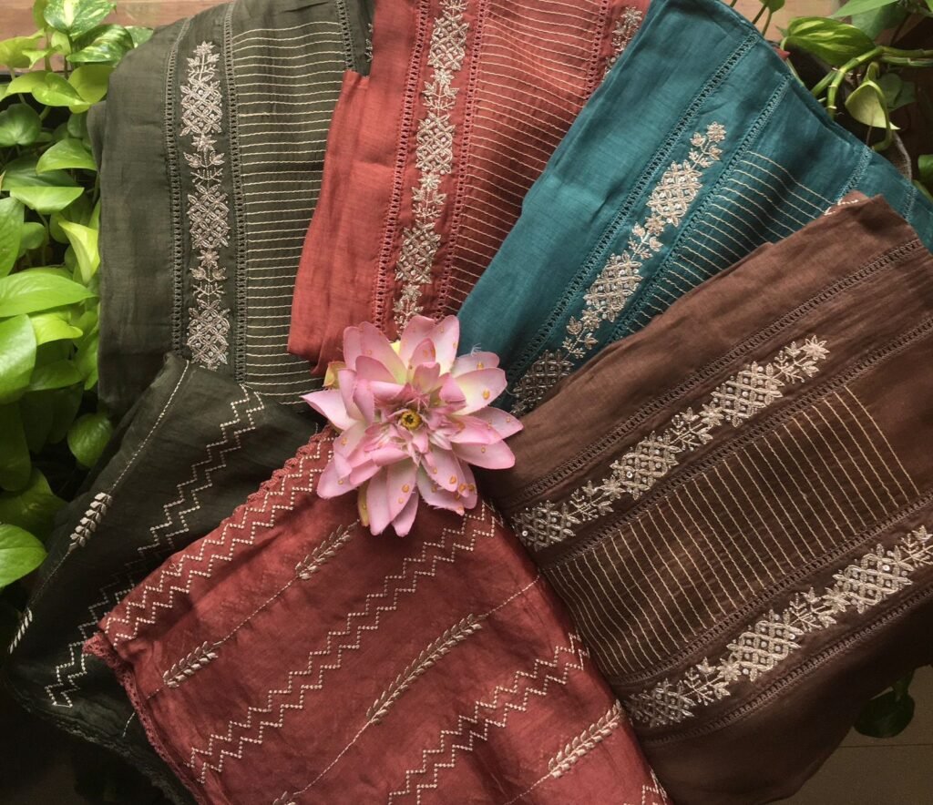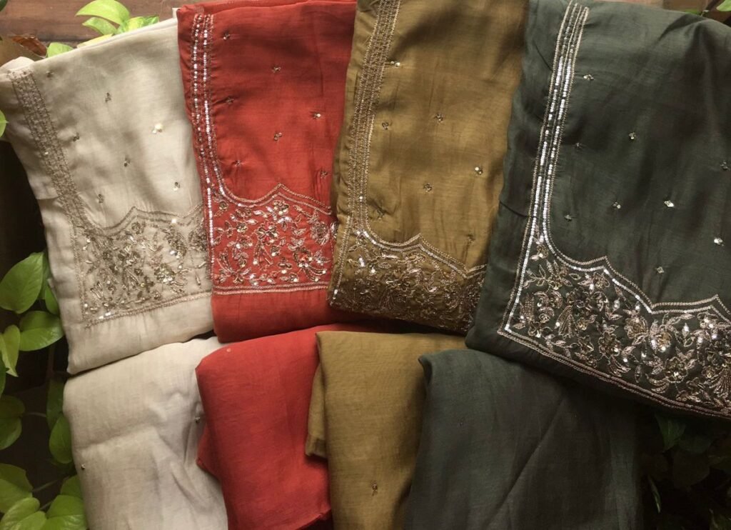 Stunningly Beautiful Kutch Worked Chandheri Silk Sets
