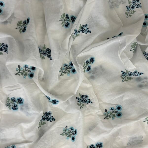 Beautiful Offwhite Running fabrics in pure Malai Chandheri with the most dainty floral Embroidery!You can avail a minimum of half metre to the no of metres you require to design your attire !