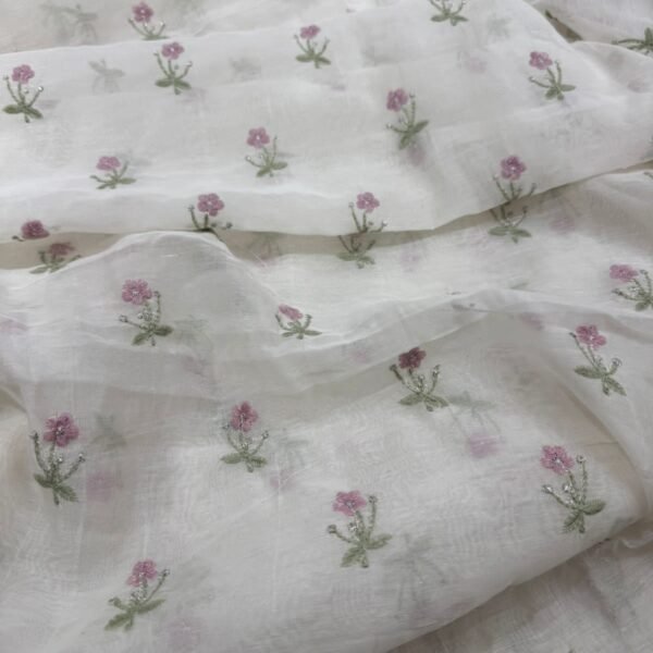 ☘️Beautiful Offwhite Running fabrics in pure Malai Chandheri with the most dainty floral Embroidery!You can avail a minimum of half metre to the no of metres you require to design your attire !