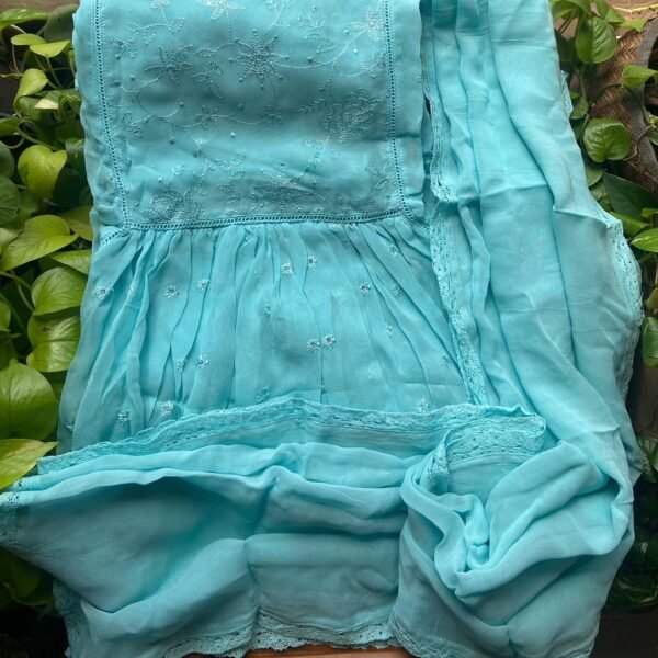A beautiful collection of Pure georgette top & Duppatta with stunning patterning of intricate embroidery & lace detailing.