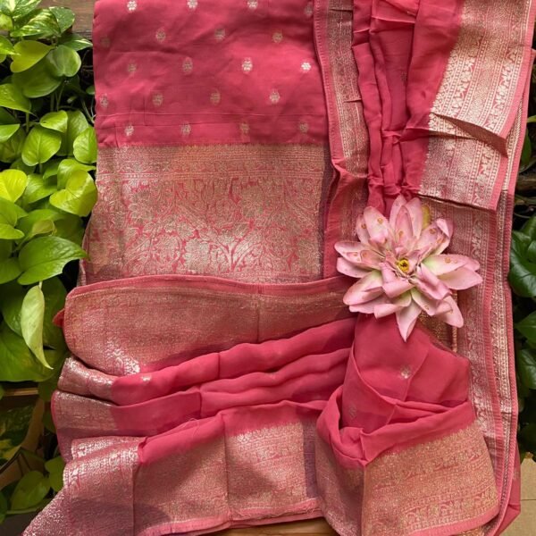 A beautiful collection of Pure viscose georgette top & Duppatta with stunning Benarasi hand weaving & santoon bottom