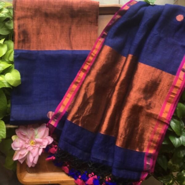 A beautiful collection of Pure linen silk top & Duppatta with stunning Jamdhani hand weaving. No bottom. Can be customised on request