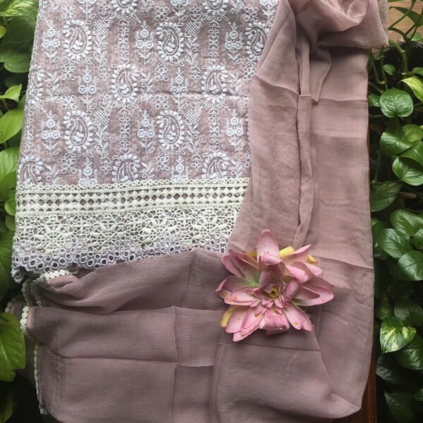 A stunningly gorgeous collection in pure kota top with intricate Chikankari embroidery,cotton bottom and pure chiffon Duppatta