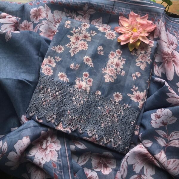A stunningly gorgeous collection in pure muslin top with beautiful floral prints & Cutwork ,cotton bottom & floral muslin Duppatta
