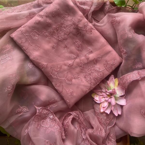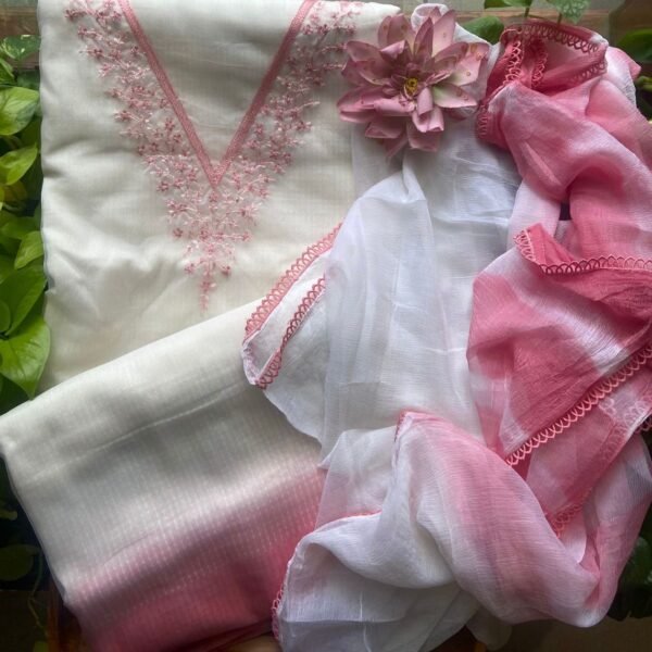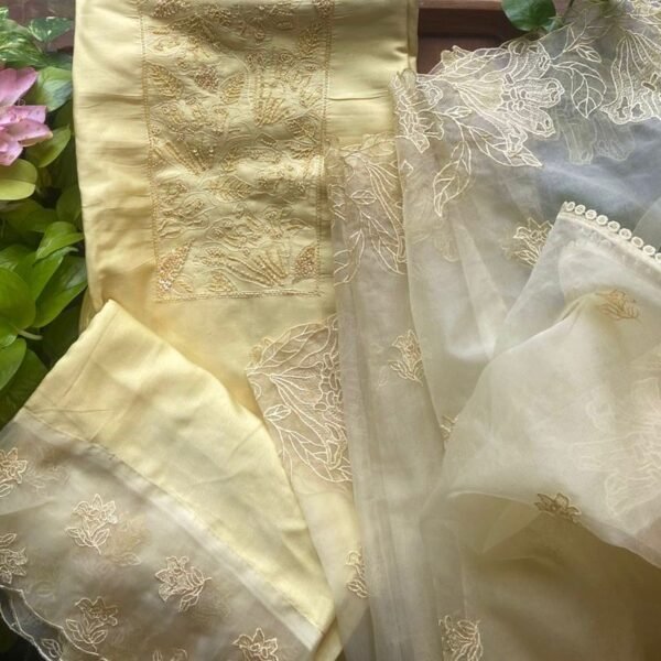 ☘️Presenting Our Beautiful new collection in Organza silk top exquisite hand embroidery, ombré dyeing and printed inner santoon bottom and chiffon ombré dyed chiffon Duppatta with French lace borders