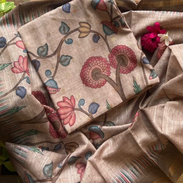Presenting Our Beautiful new collection in linen cotton top and Duppatta with Benarasi weaving Kalamkari block prints. Cotton silk bottom
