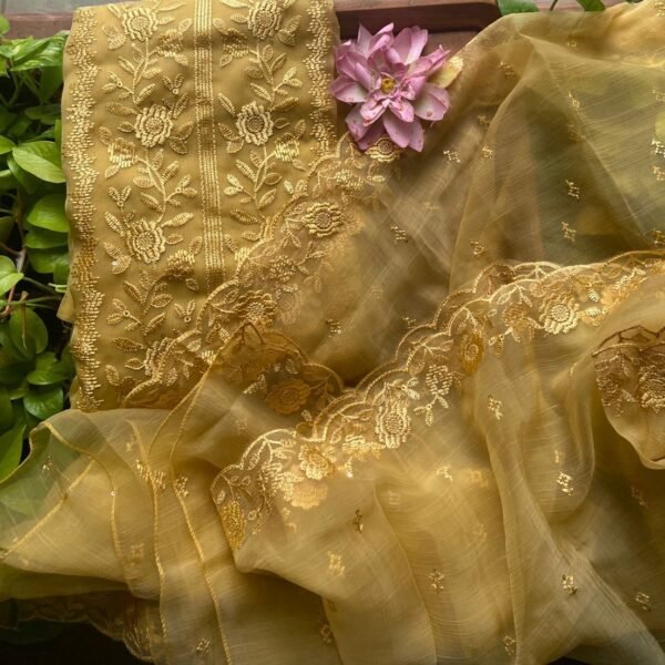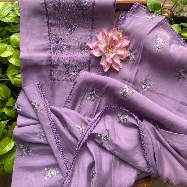 A beautiful collection of Pure Benarasi Chandheri Silk Top and Duppatta in beautiful hues with beautiful hand embroidery and santoon bottom