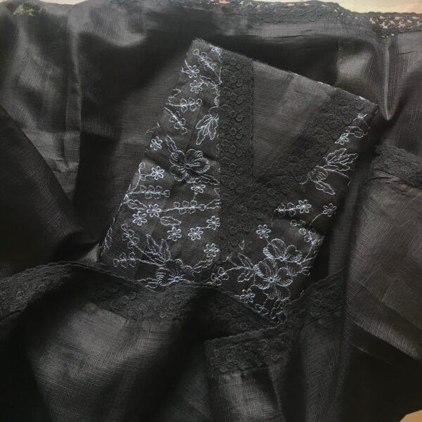 Are you looking out for Beautiful & Unique Designer wear suits with French lace to add to your wardrobe ? These kota French lace suits are the perfect choice! Kota silk top with Chikankari embroidery & French lace detailing , cotton silk bottom & Kota silk Duppatta with French lace detailing