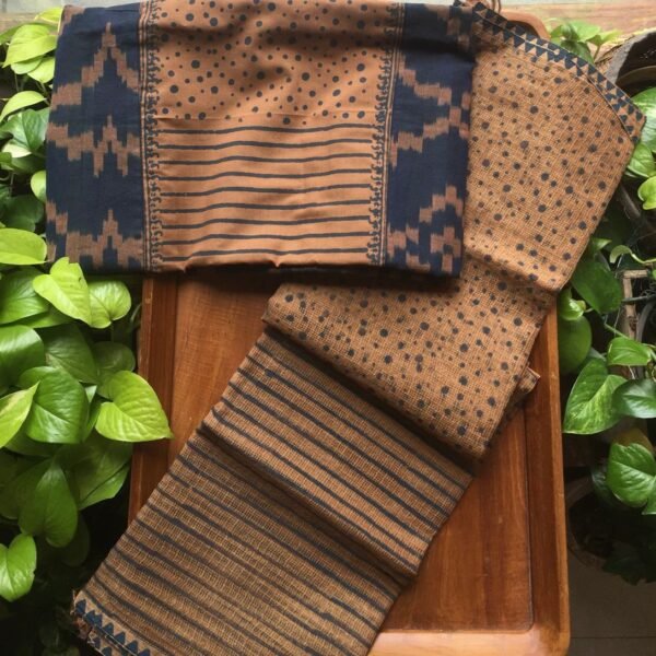 Are you looking out for Beautiful & Unique Designer Cottons to add to your wardrobe ? These Hand block printed Indigo cottons are the perfect choice! Pure cotton top with mirror work , (does not need lining ) cotton bottom & hand block printed chiffon duppattas