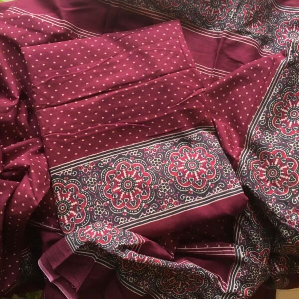 Are you looking out for Beautiful & Unique Designer wear suits in Silks to add to your wardrobe ? These Muslin Ajrak silk suits are the perfect choice!Pure Muslin Silk top & Duppatta with stunning Ajrakh prints & cotton bottom