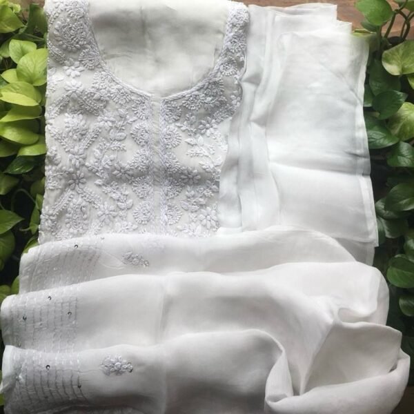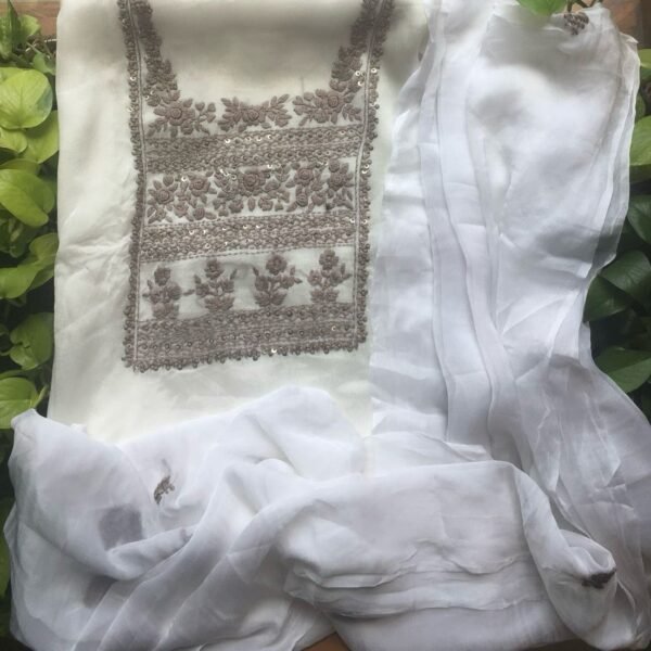 Launching Our Exclusive range of beautiful Premium Pure Viscose Organza & Georgette Top & Duppatta with exquisite hand Chikankari embroidery on top & Duppatta & santoon bottom ! Makes an Ideal & perfect choice for the Festive Easter Season ! Flaunt in Offwhite & get it dyed to the colour of your choice later on (Please stitch it with santoon Lining