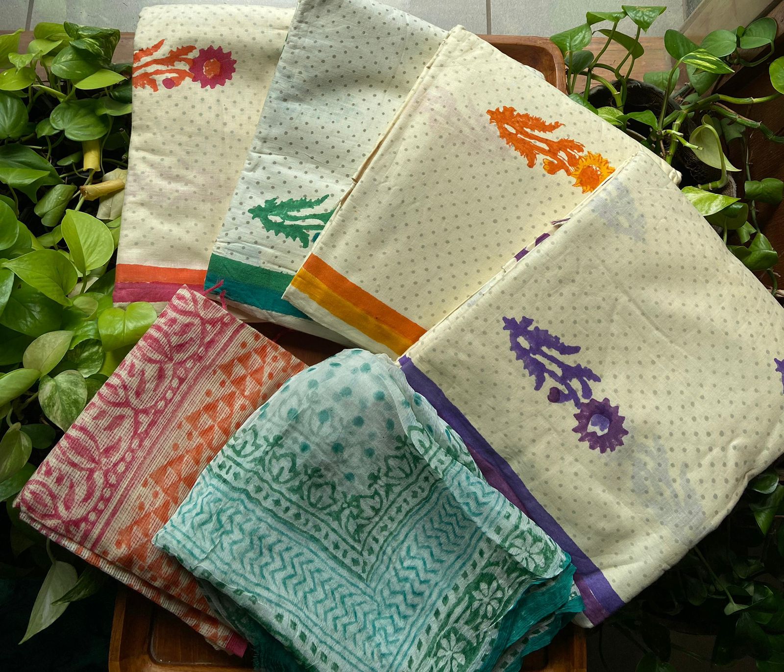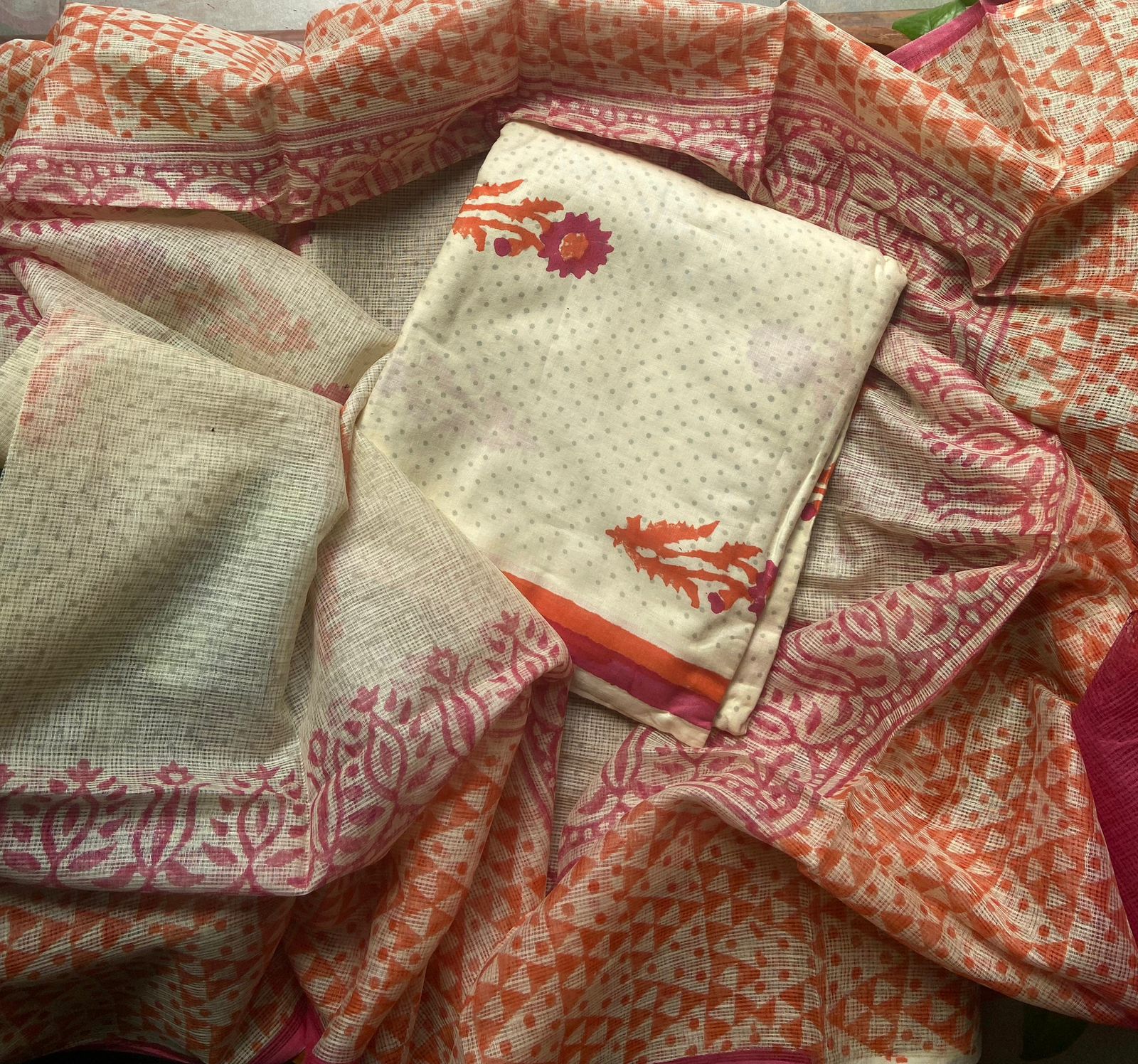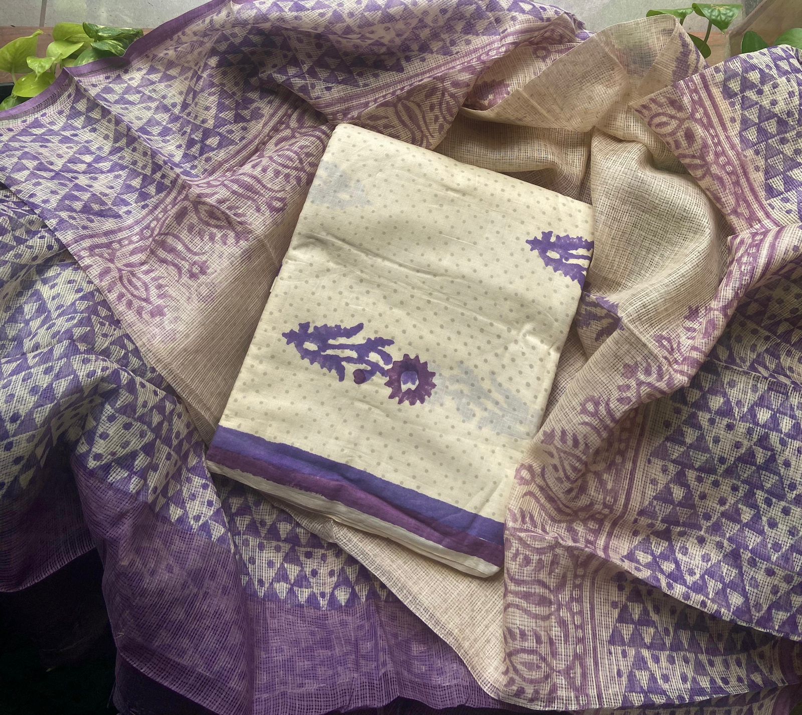 A beautiful collection of Pure cotton top with block prints, cotton printed bottom and Kota Doria Duppatta