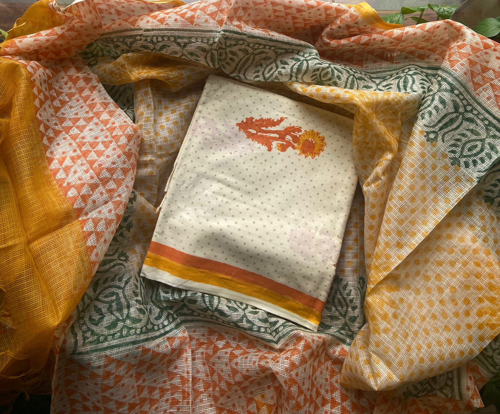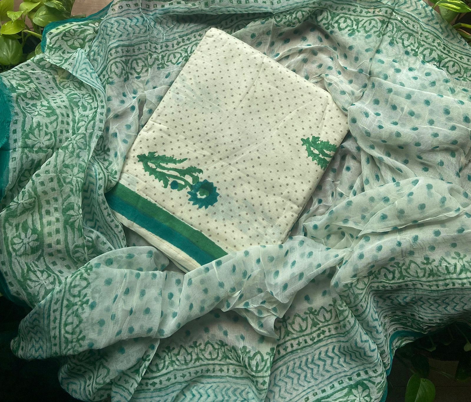 ☘️ A beautiful collection of Pure cotton top with block prints, cotton printed bottom and Kota Doria Duppatta
