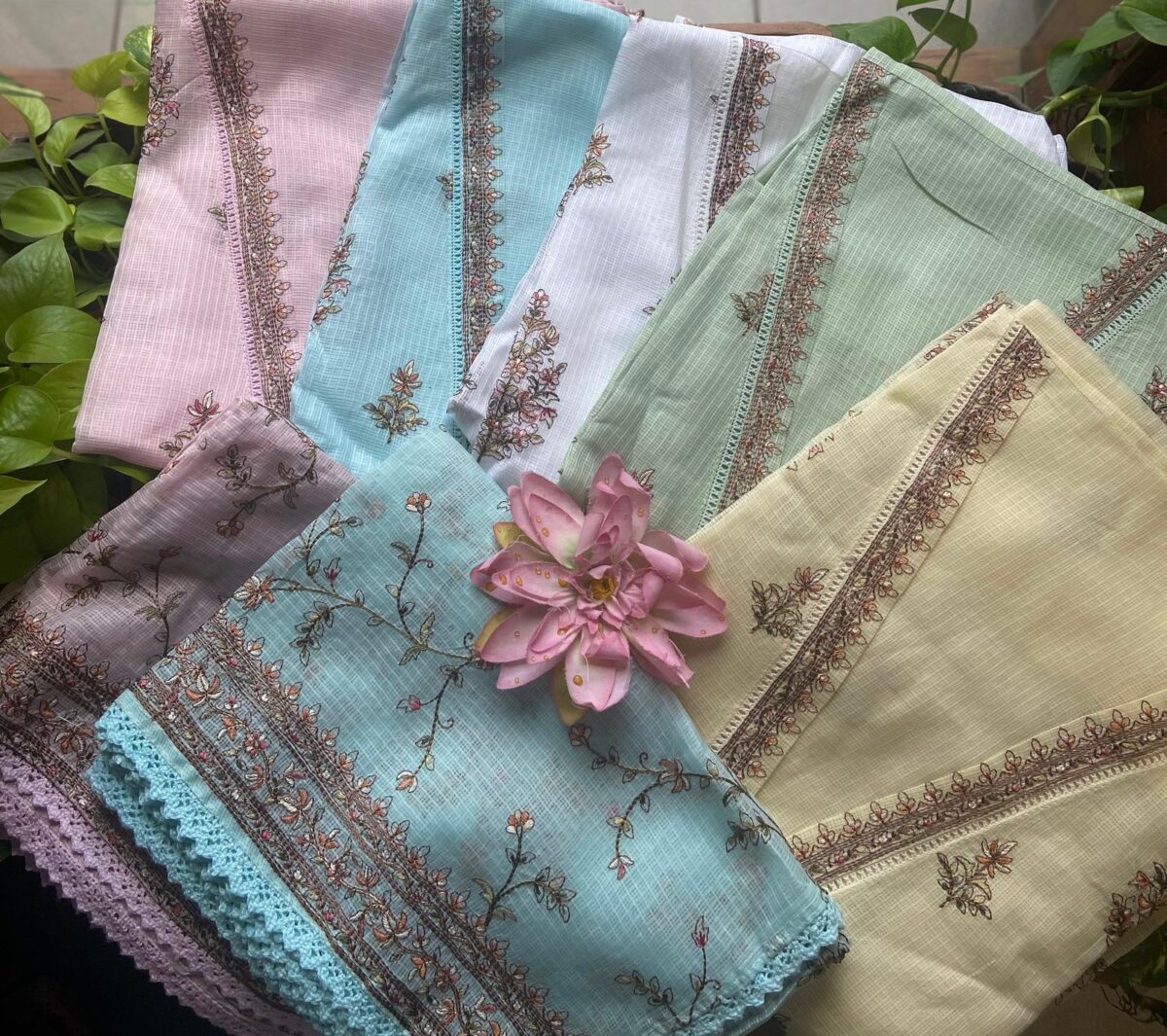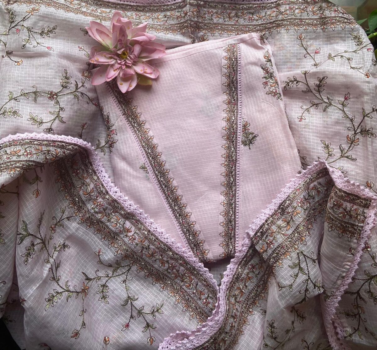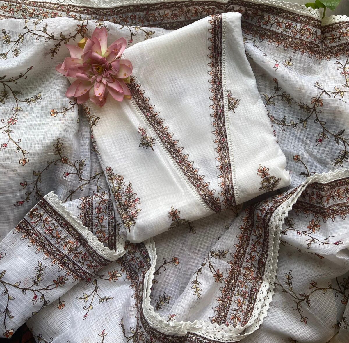 A beautiful collection in pure Kota silk top and Duppatta with intricate Aree embroidery and cotton botto