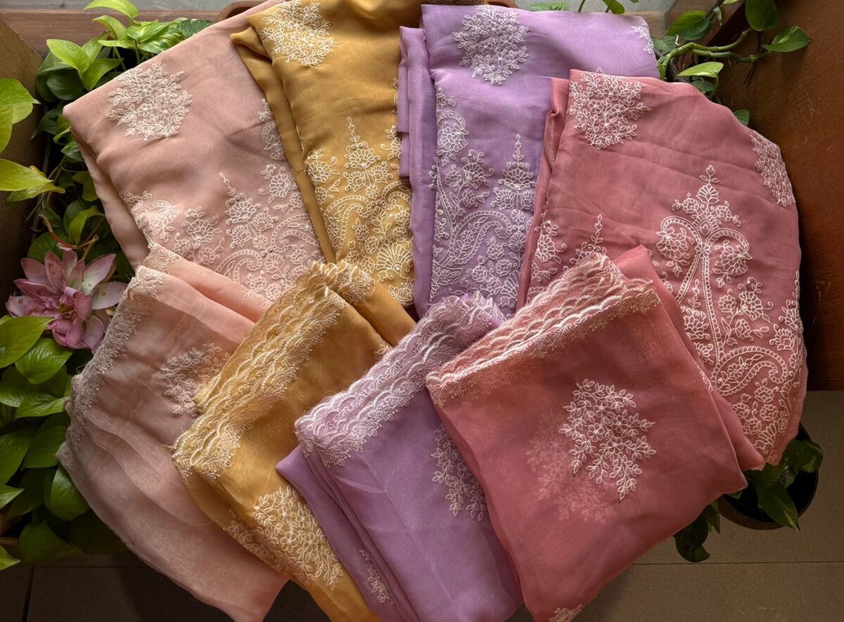 Be the first to review “☘️A beautiful collection of Tissue Organza top and Duppatta with intricate Chikankari embroidery and cotton silk bottom. Style these for a beautiful wear this Onam !” Cancel reply