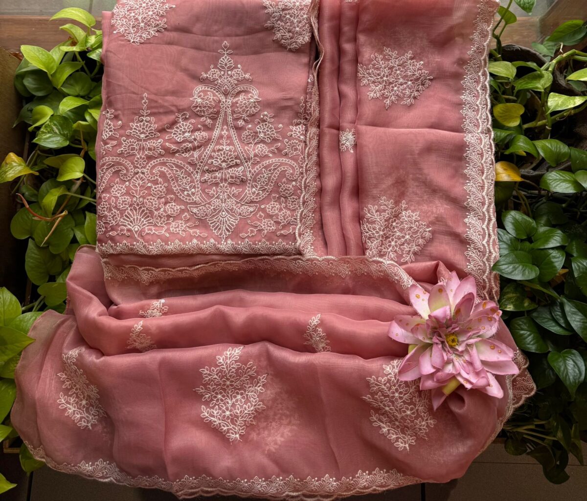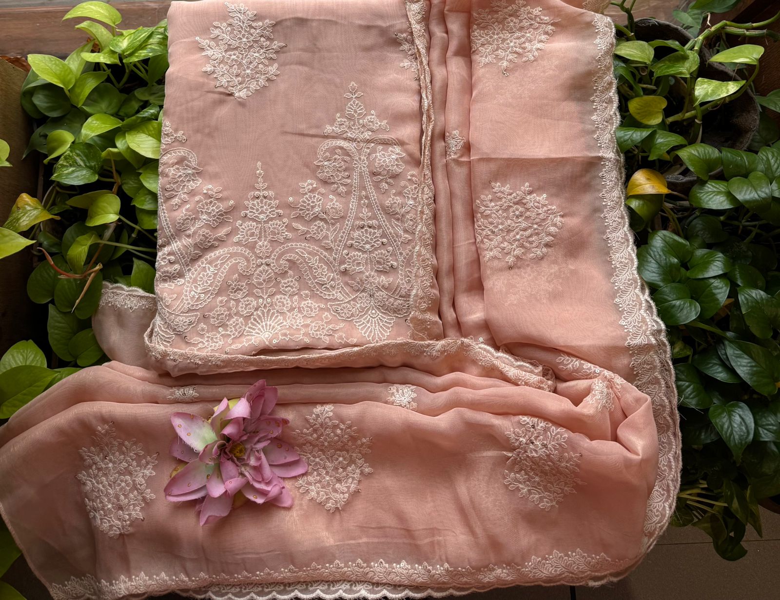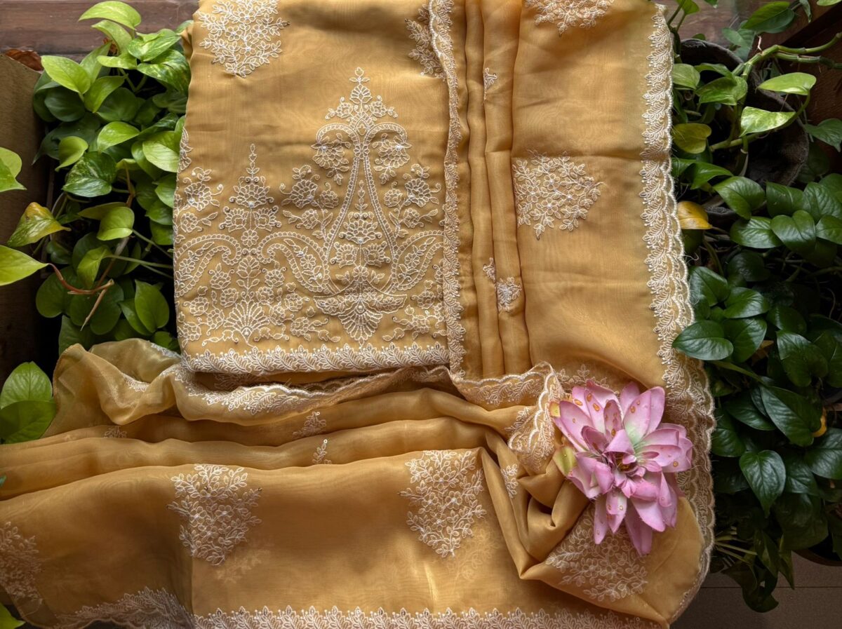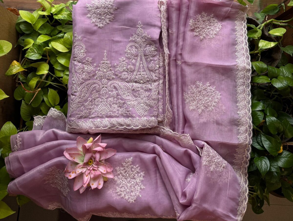 Stunningly gorgeous premium pure viscous organza suit set with exquisite hand embroidery