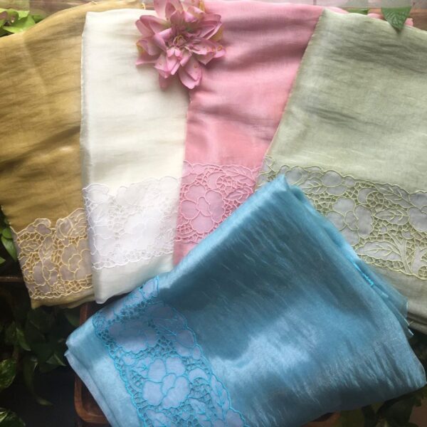 A Beautiful Collection in Soft silk kota sarees with intricate Chikankari embroidery & tiny French lace borders for perfection .with blouse in plain silk kota