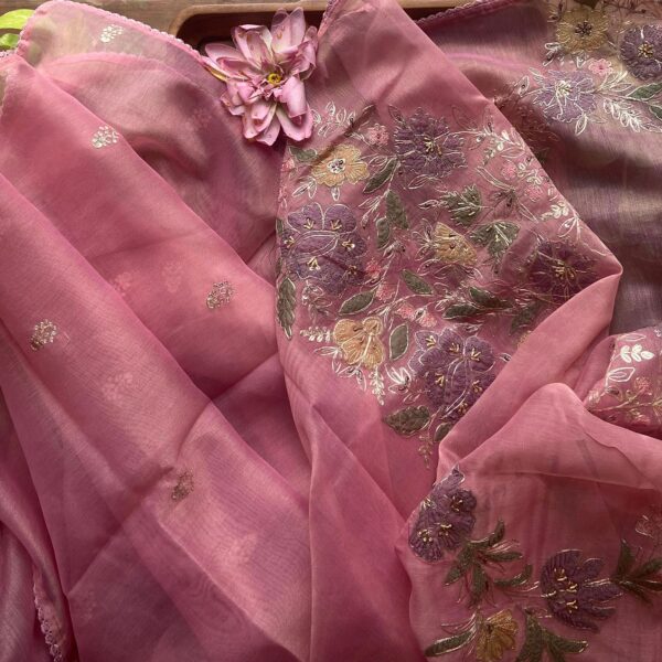 HomeSarees ☘️A stunning pure Sikk Organza saree with beautiful embroidery & appliqués all along length Of saree and a stunning Benarasi silk blouse