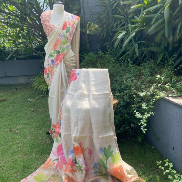 A beautiful collection of Soft Tissue Organza sarees with exquisite Floral & Cutwork embroidery & intricate scalloping . With blouse with Cutwork embroidery. Beautiful Sarees that are the perfect choice for the upcoming baptism , holy communion season