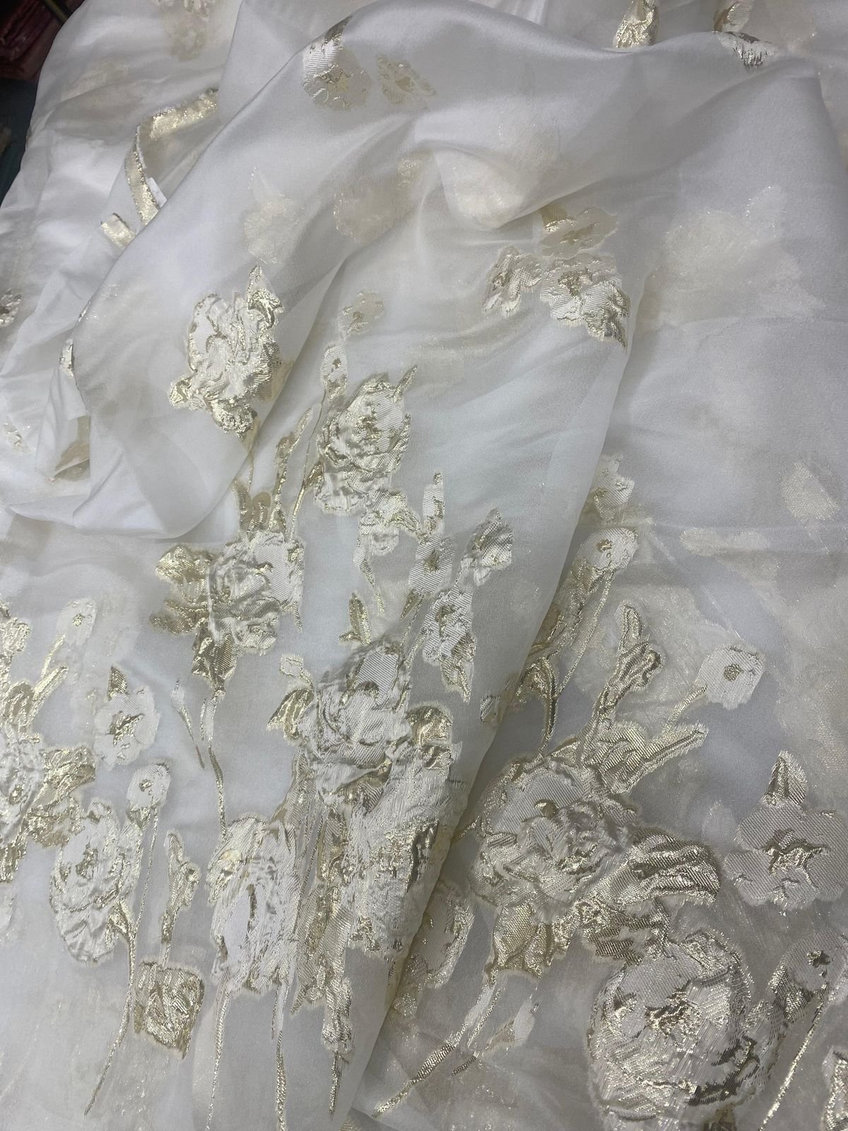 ☘️Presenting beautiful Premium Imported Turkish Organza Fabrics in gorgeous hues of Offwhite & Gold! Beautiful fabric with a vintage charm and grandeur ideal for the upcoming festive season.