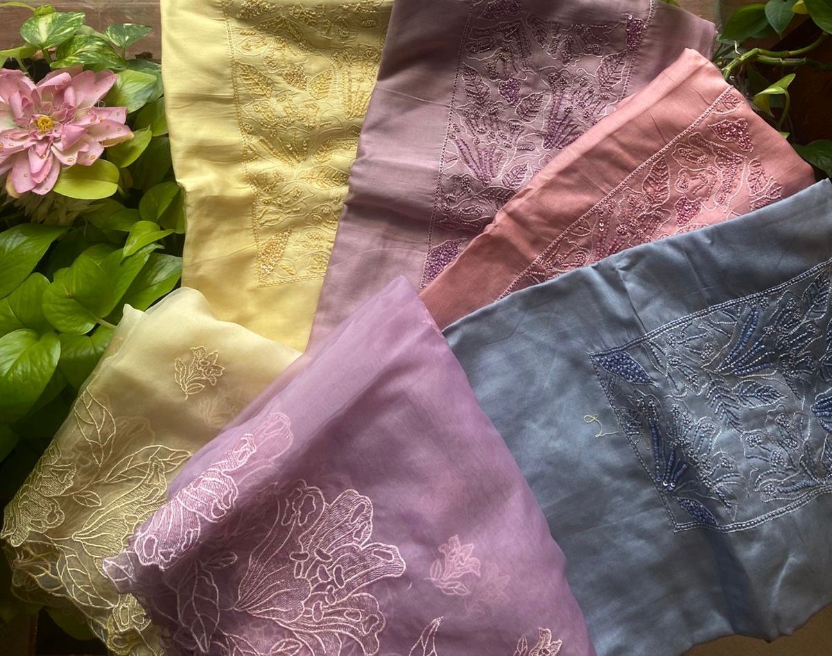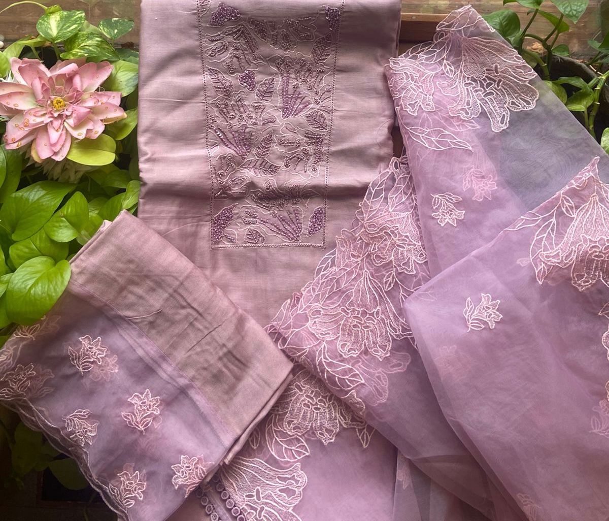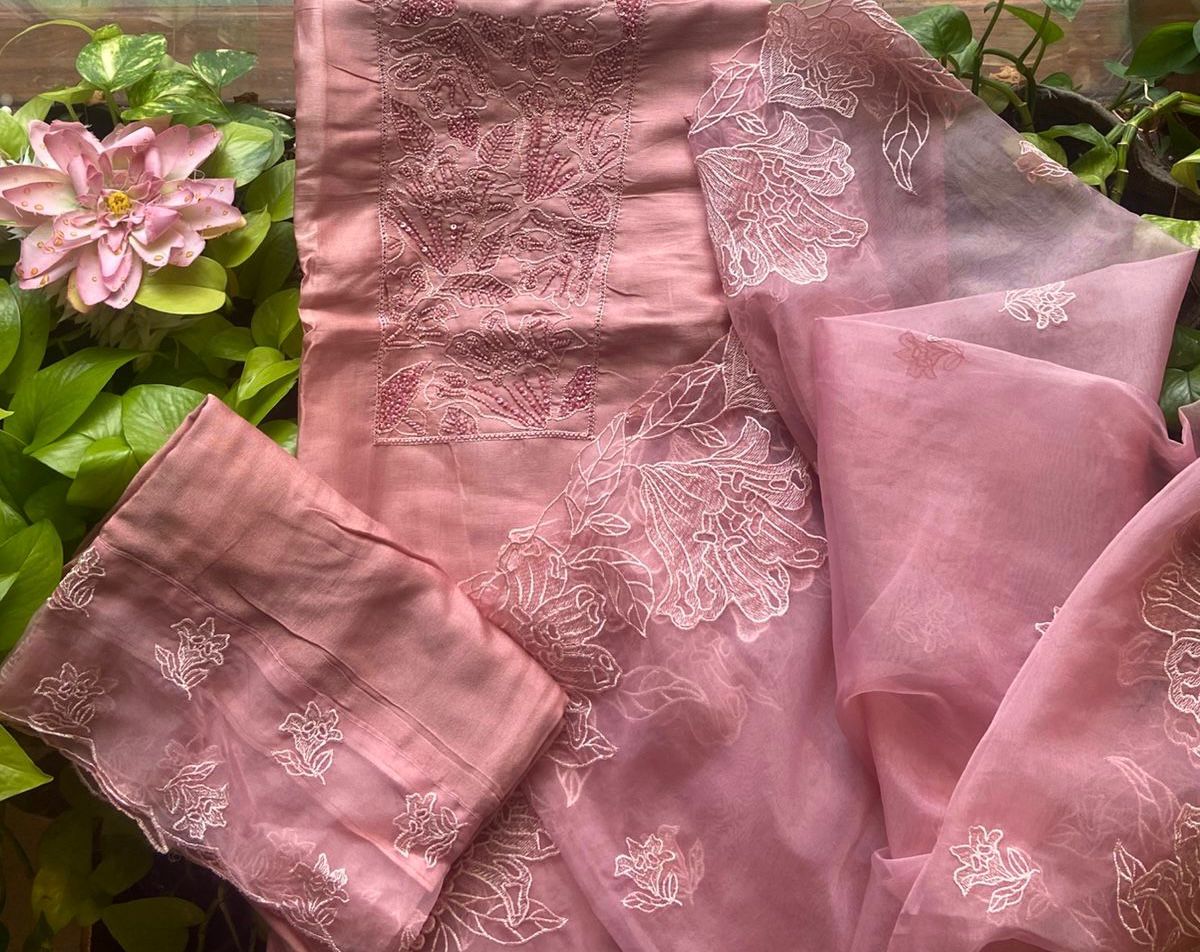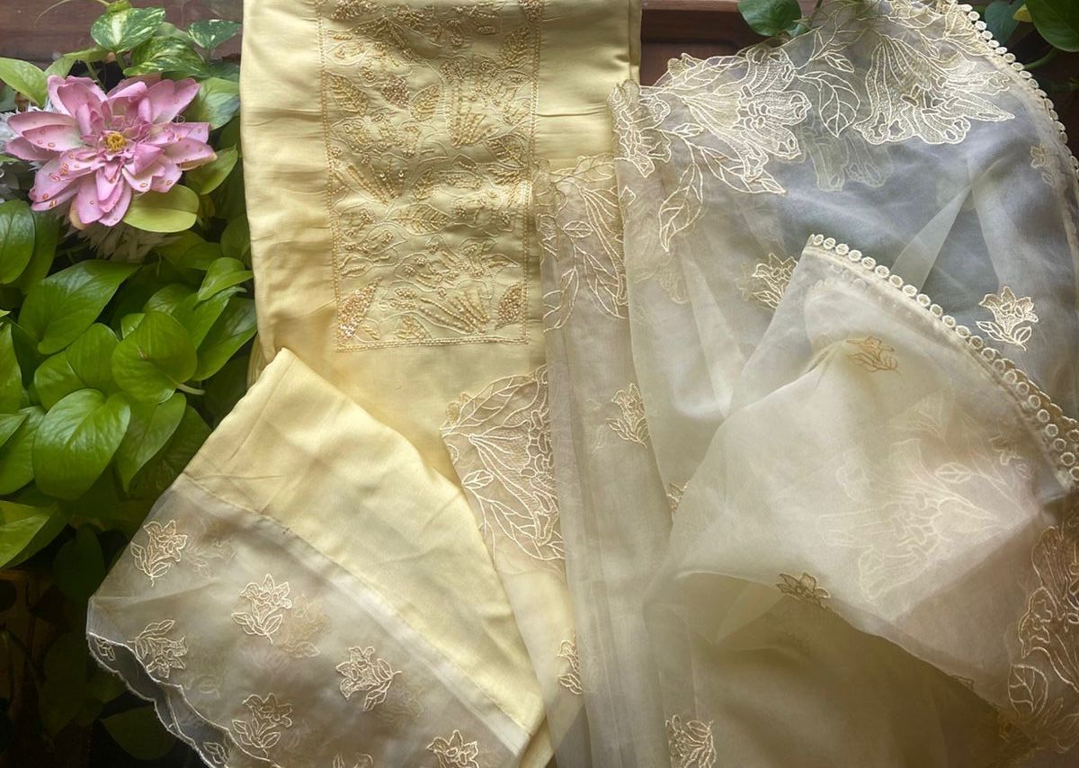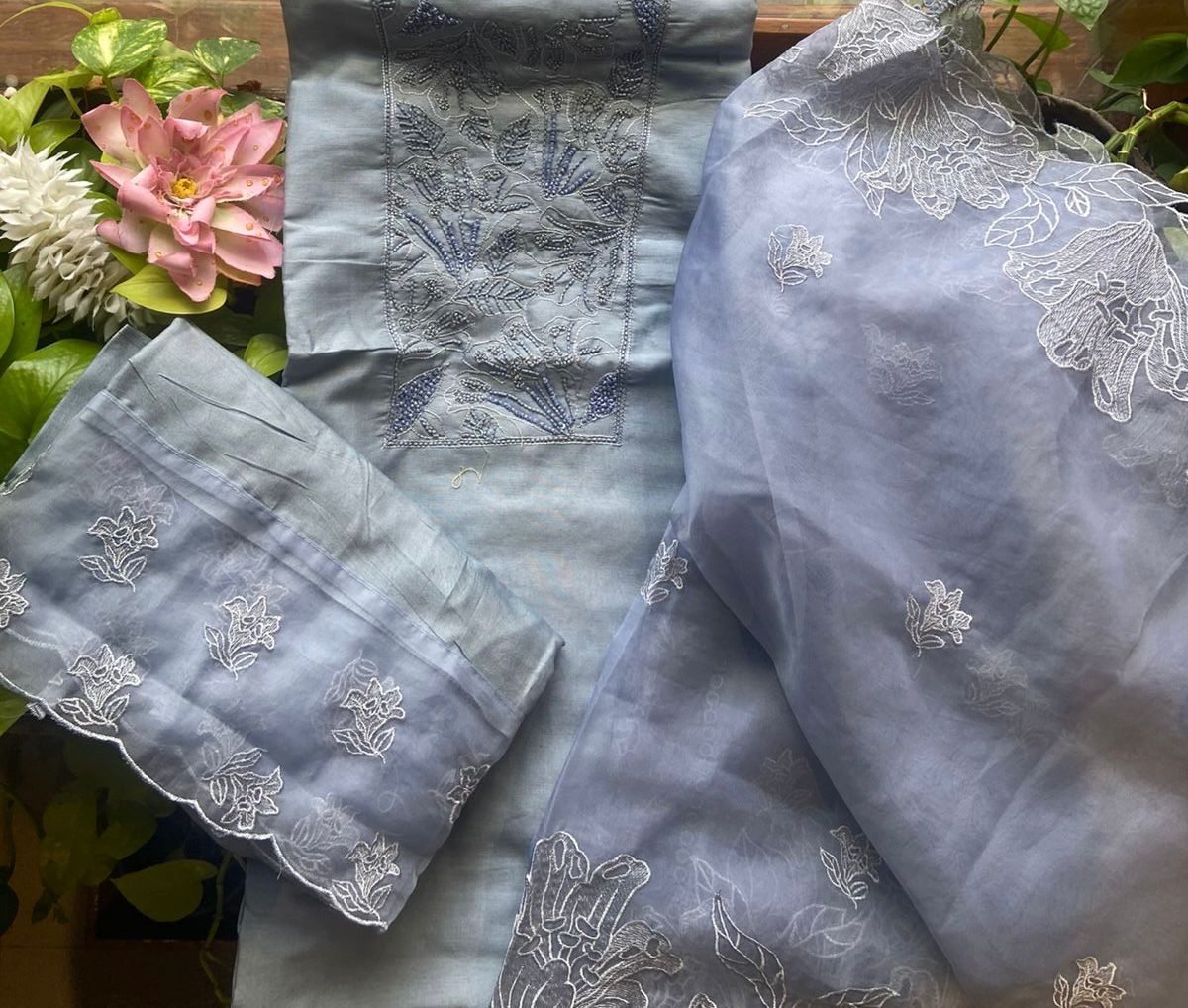 Stunningly gorgeous premium pure viscous organza suit set with exquisite hand embroidery