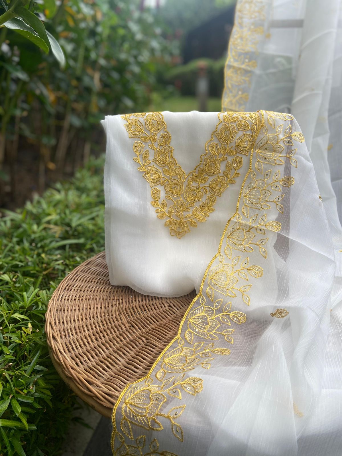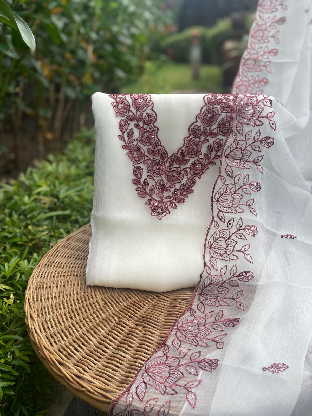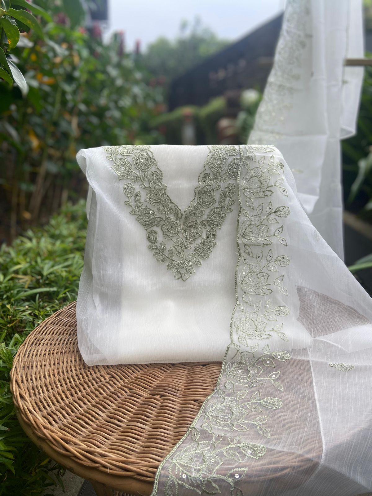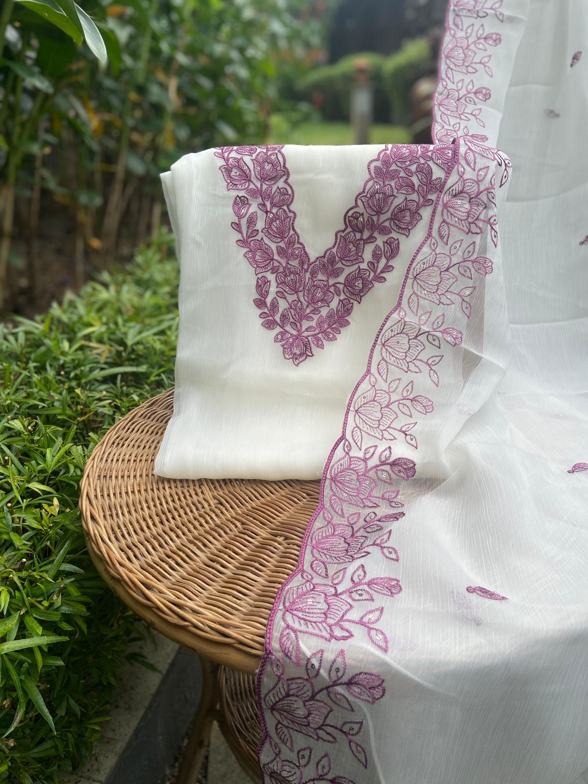 Stunningly gorgeous premium pure viscous organza suit set with exquisite hand embroidery