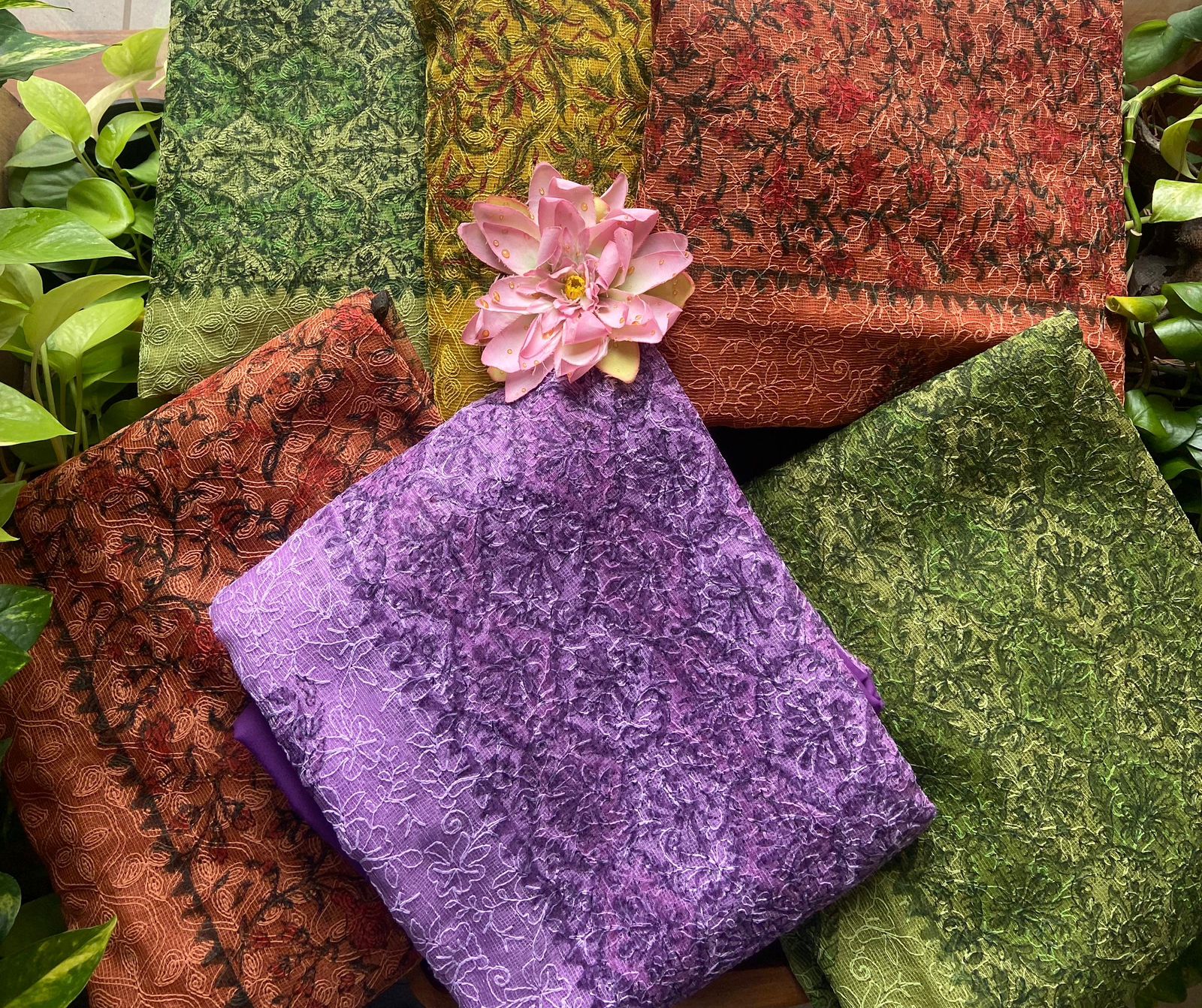 A beautiful collection of chiffon top & Duppatta with Cutwork rosette embroidery & cotton silk bottom. Hurry & order these before we run out of them. These suits are the ideal choice for the festive season and gifting! Style them with transparent necks or crop top styles & stay stylish this season
