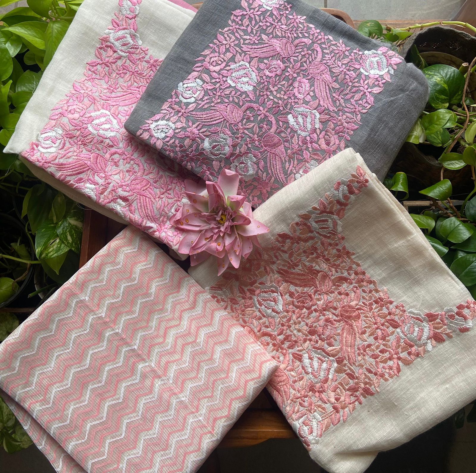 Presenting out Brand New Collection for Onam at a Special Price of ₹1499/- curated on Chiffon woth Cutwork and beautiful floral embroidery! Ethereal hues of Pink, Pearl Green, Ivory gold, Dusty pink & Jet black on Chiffon top and Duppatta with floral embroidery & Cutwork. The floral embroidery design is created to resemble pearl embroidery. Bottom is cotton silk