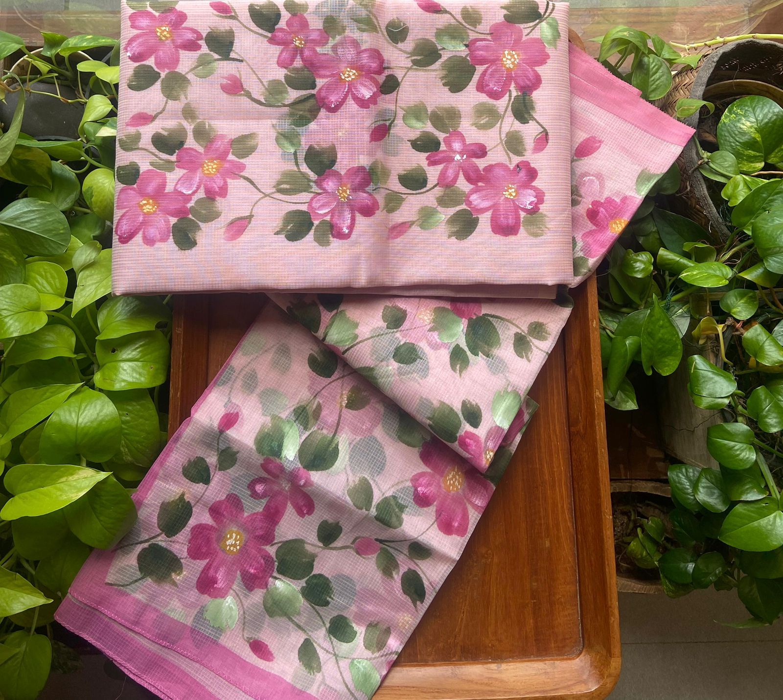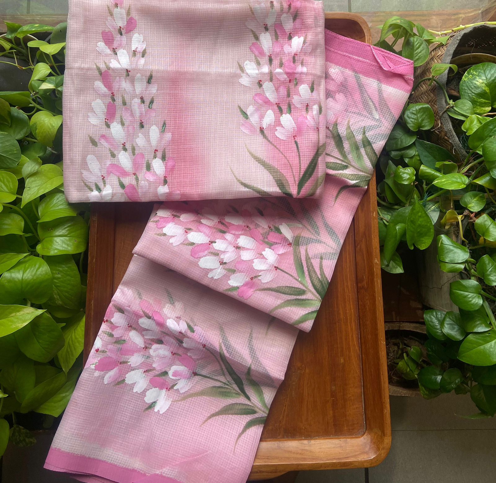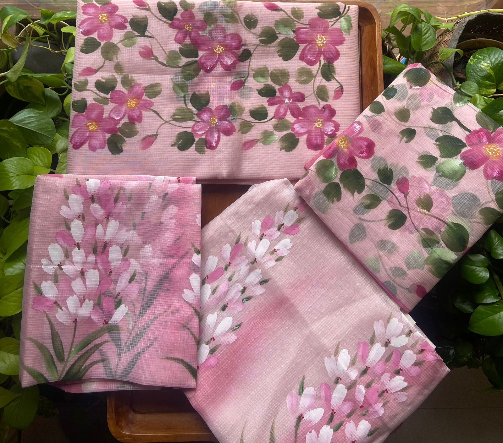 Presenting out Brand New Collection for Onam at a Special Price of ₹1499/- curated on Chiffon woth Cutwork and beautiful floral embroidery! Ethereal hues of Pink, Pearl Green, Ivory gold, Dusty pink & Jet black on Chiffon top and Duppatta with floral embroidery & Cutwork. The floral embroidery design is created to resemble pearl embroidery. Bottom is cotton silk