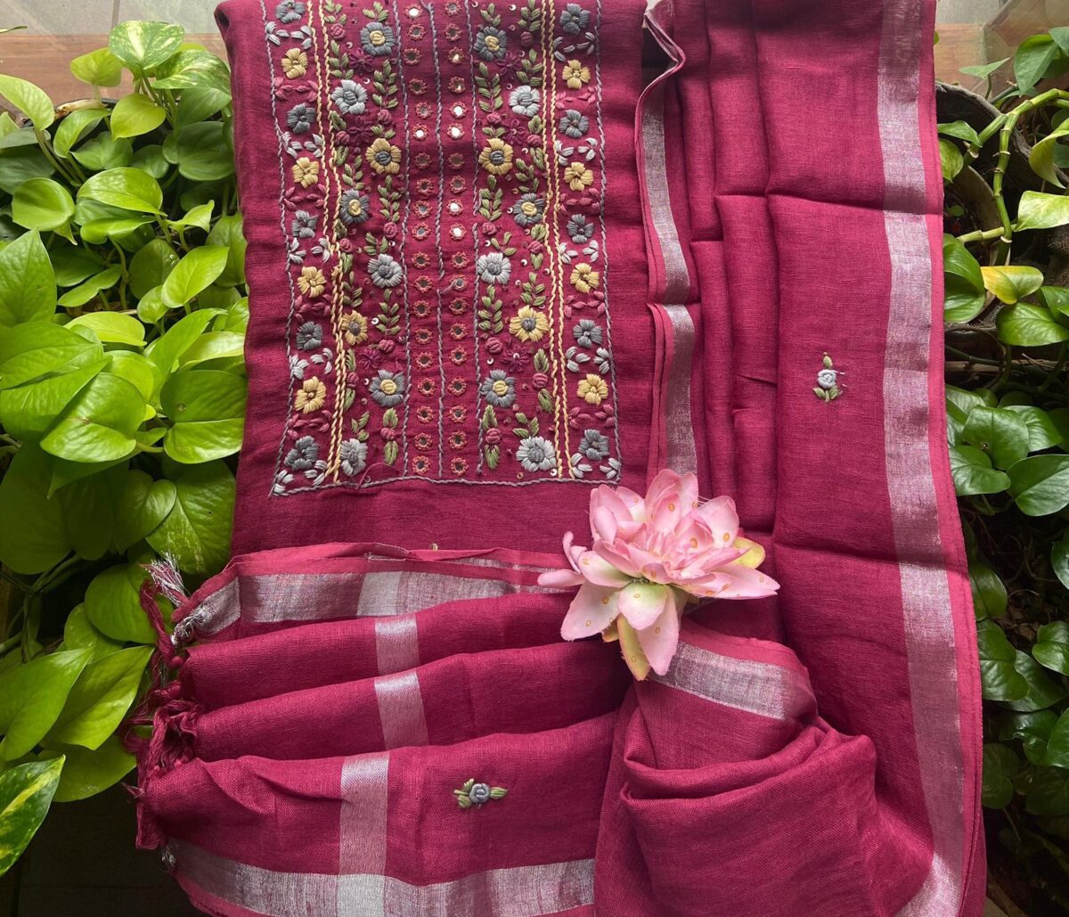 A beautiful collection of pure linen top & Duppatta with beautiful hand embroidery all along & santoon bottom