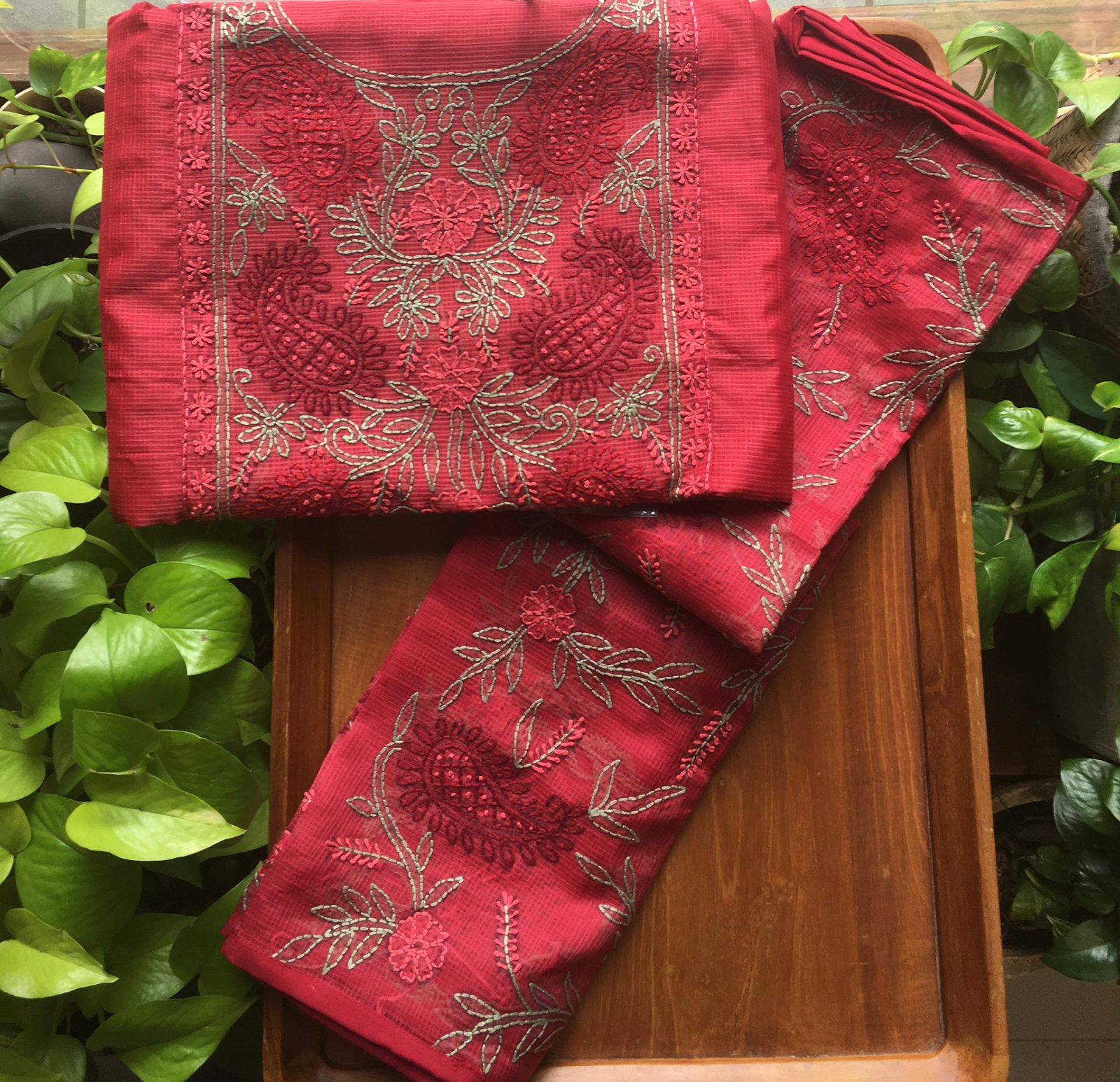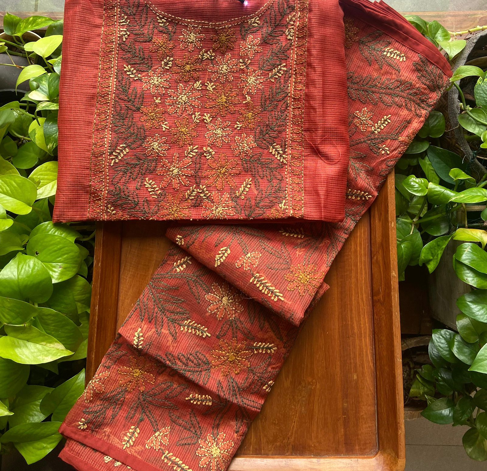 A beautiful collection of pure matka silk top & Duppatta with exquisite nakshi Kanta work & shadow work on yoke & cotton bottom!!! Limited pieces available!!!Hurry & order these before we run out of them! Perfect choice for gifting your dear ones this festive season