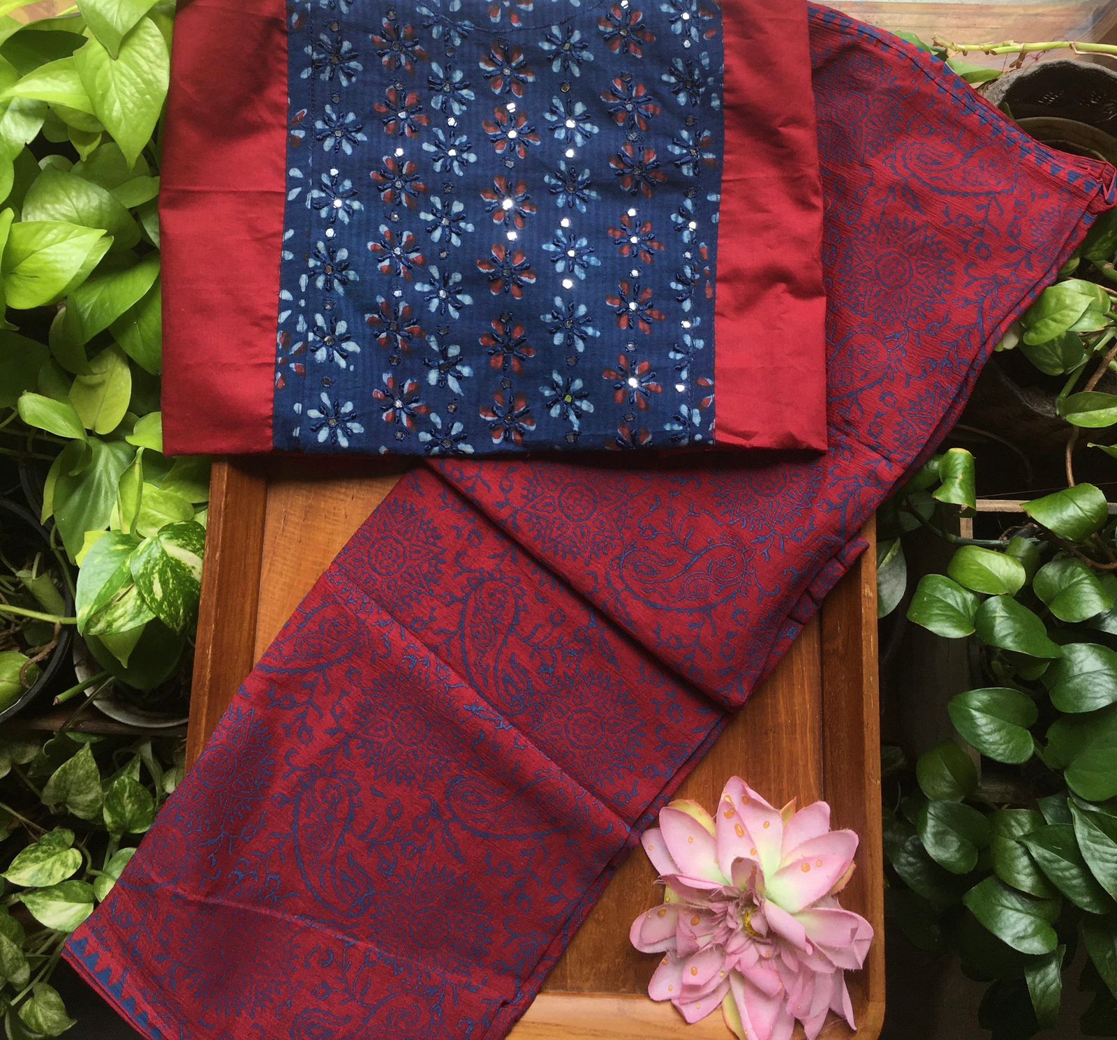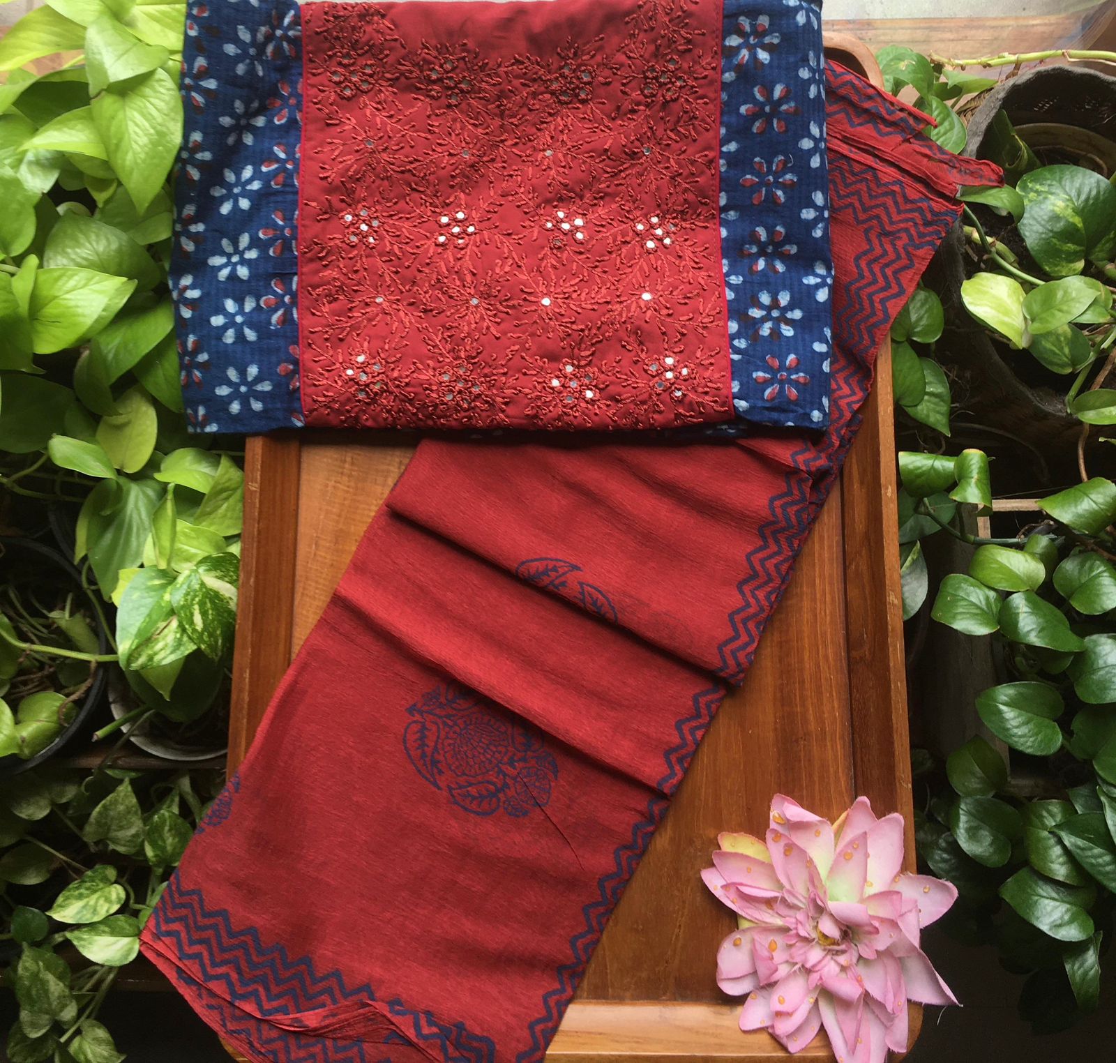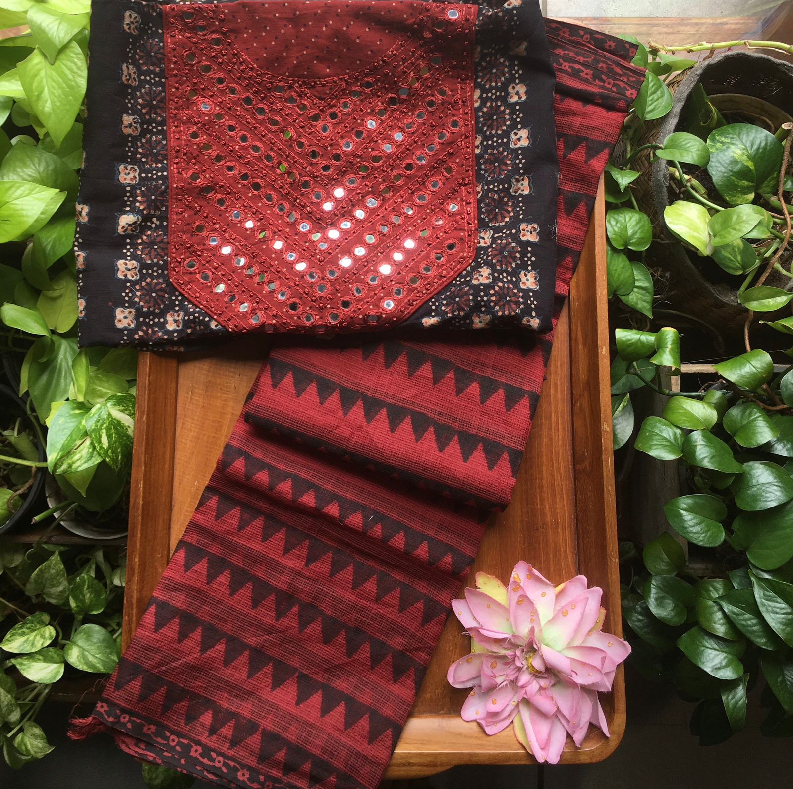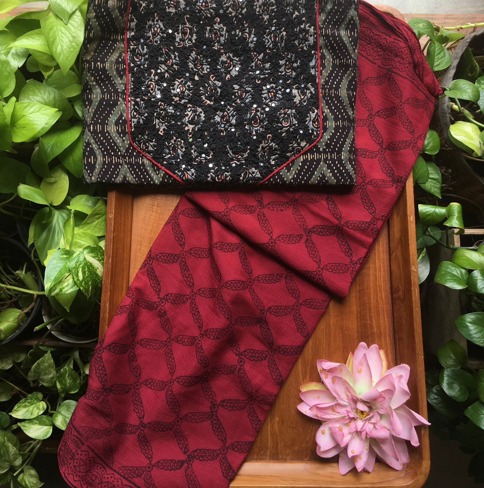 Presenting a stunning collection of Chandheri silk top & Duppatta with block prints & Kanta work detailing and santoon bottom