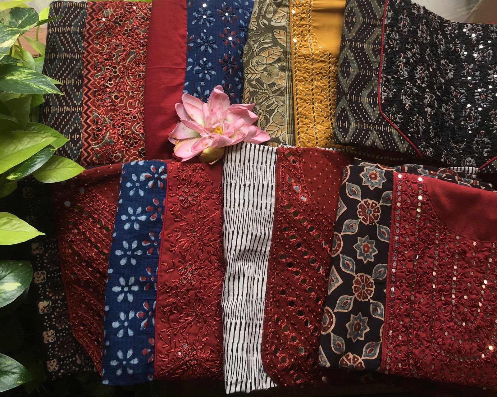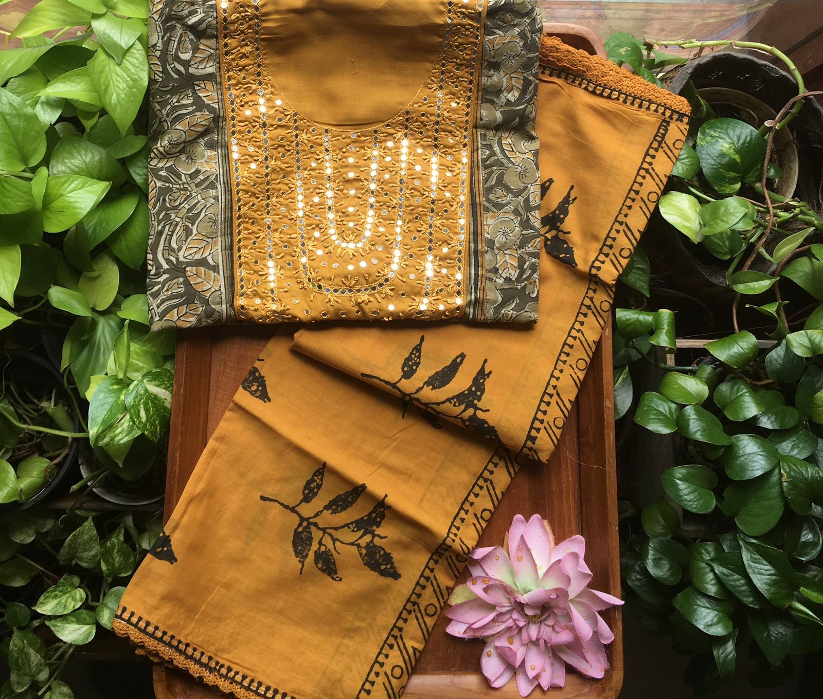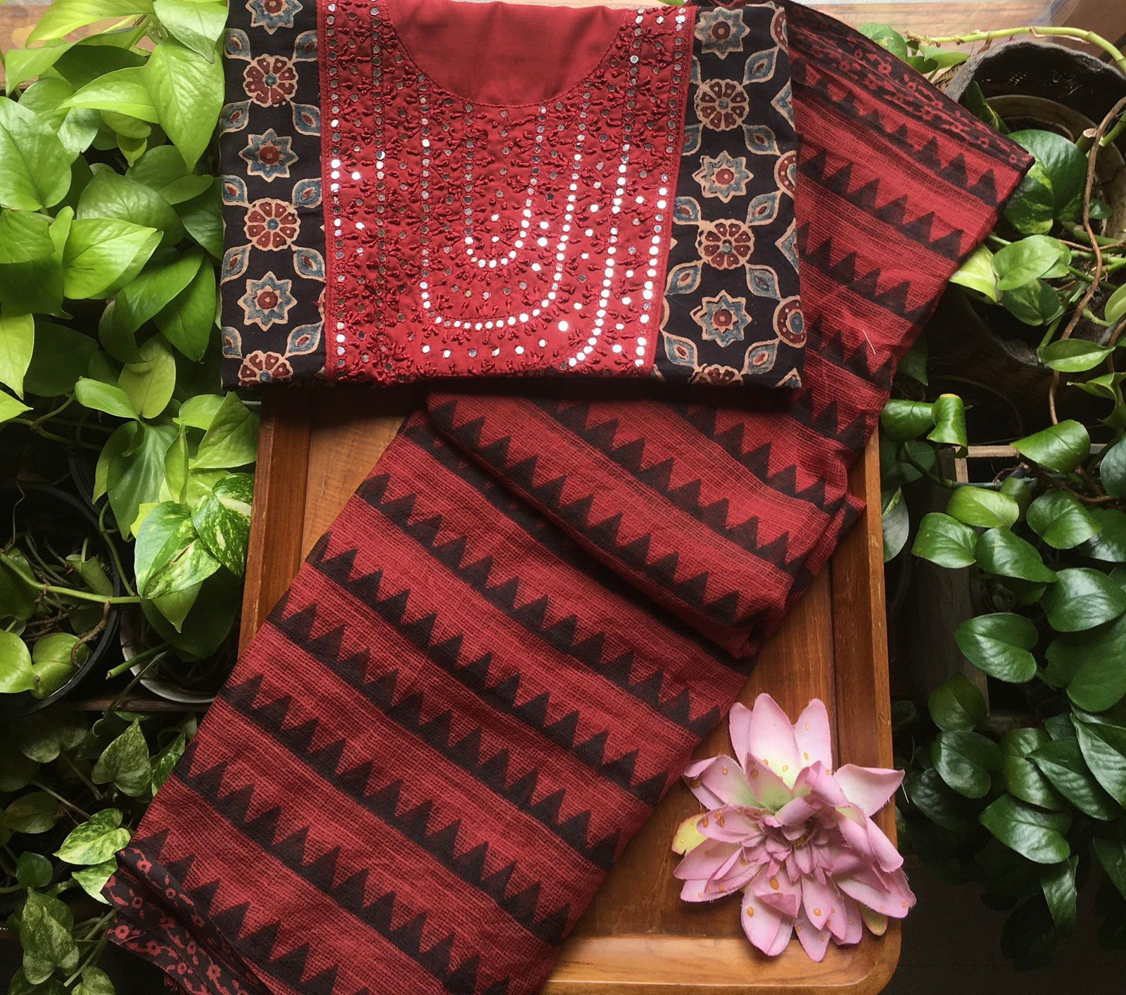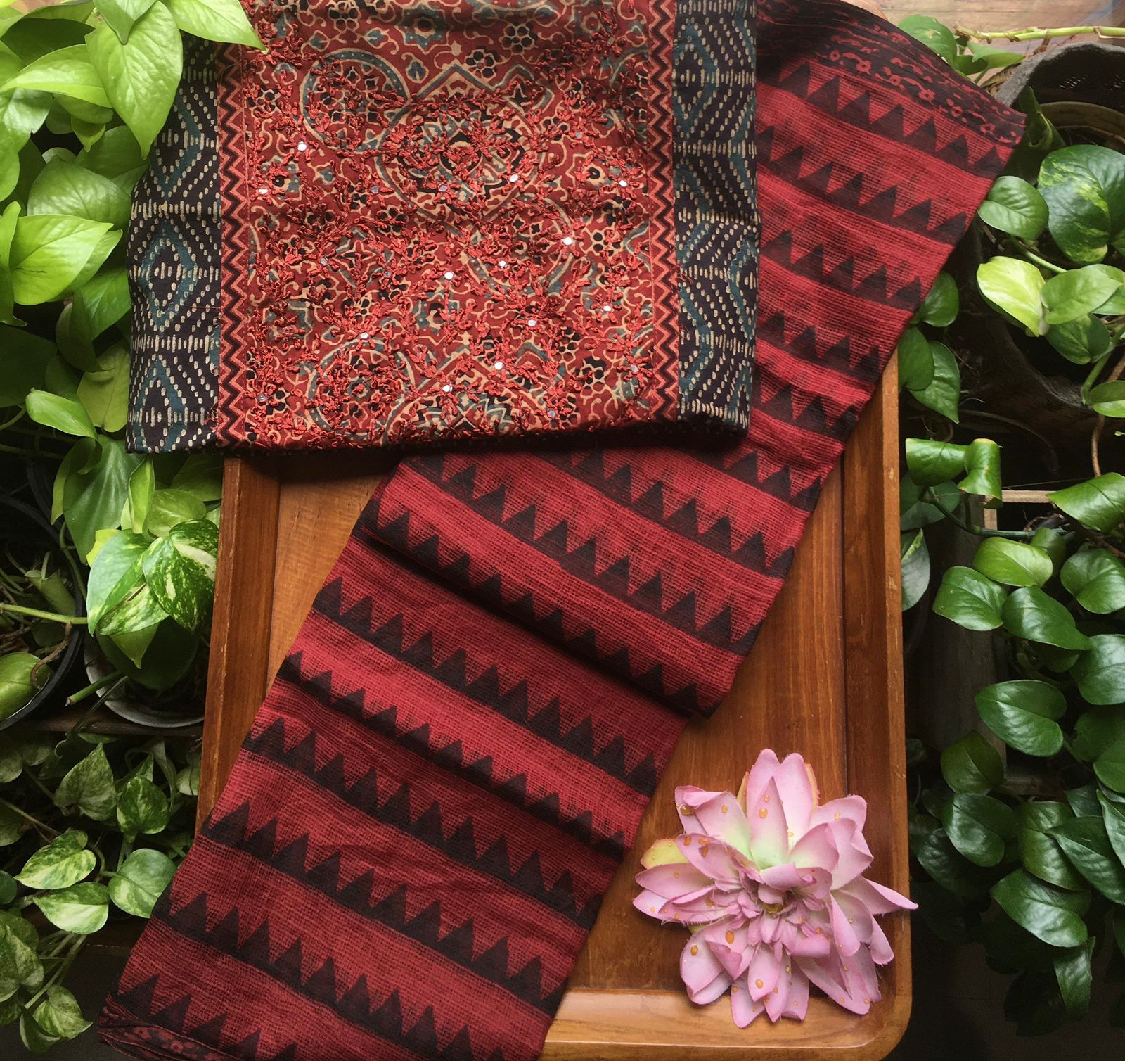 Presenting a stunning collection of Chandheri silk top & Duppatta with block prints & Kanta work detailing and santoon bottom