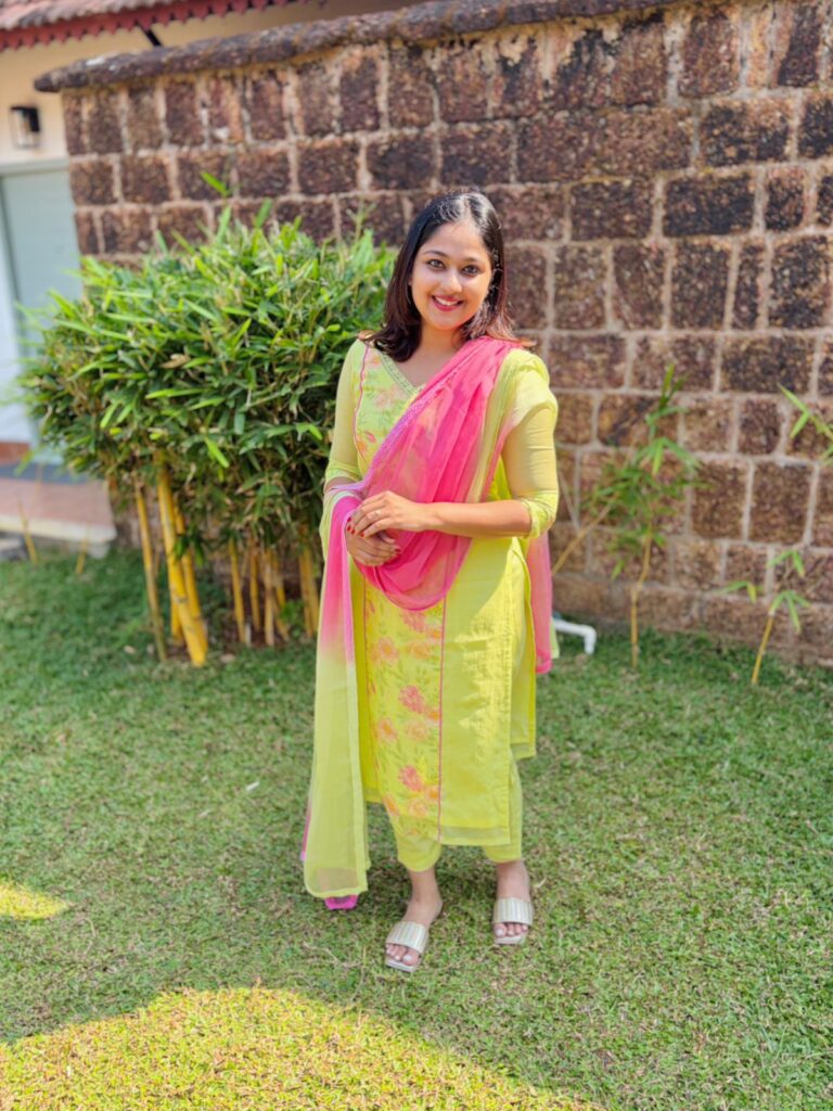 Presenting out Brand New Collection for Onam at a Special Price of ₹1499/- curated on Chiffon woth Cutwork and beautiful floral embroidery! Ethereal hues of Pink, Pearl Green, Ivory gold, Dusty pink & Jet black on Chiffon top and Duppatta with floral embroidery & Cutwork. The floral embroidery design is created to resemble pearl embroidery. Bottom is cotton silk