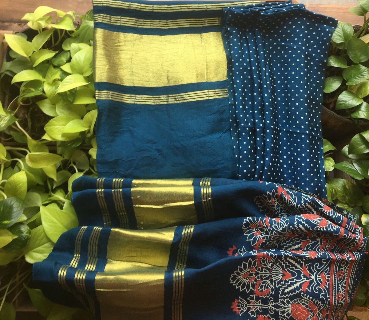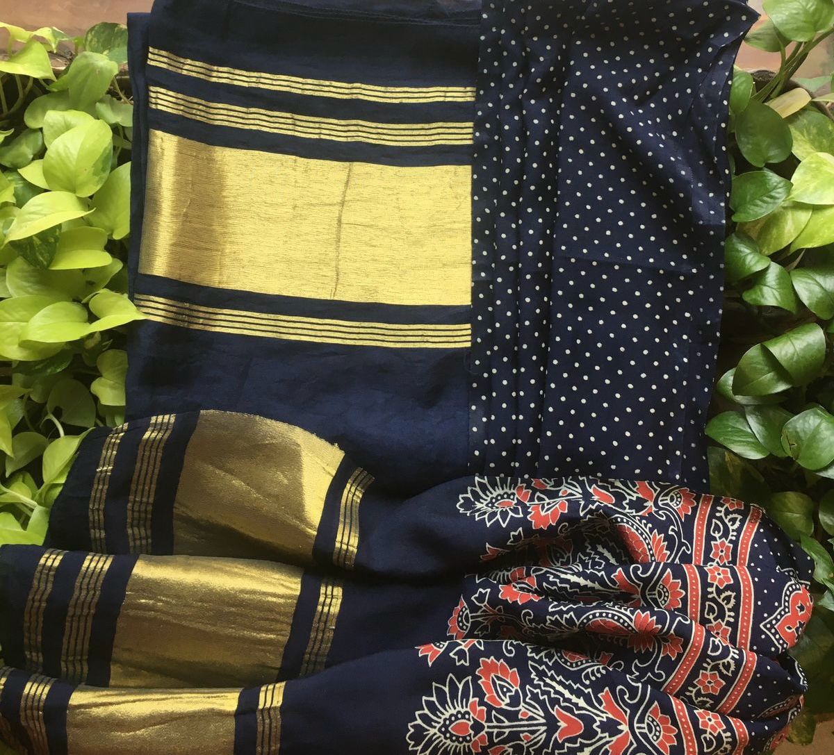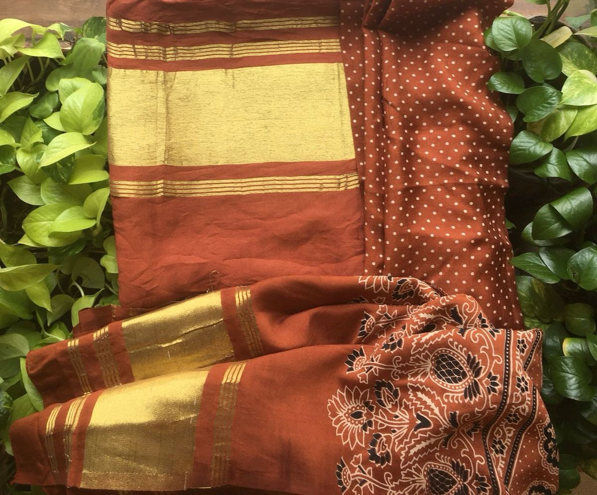 Are you looking out for Beautiful Mirror worked Kota silk suits to add to your wardrobe ? These suits with beautiful mirror work & ombré dyeing is the perfect choice! Pure kota silk top with ombré dyeing & mirror work , cotton printed bottom & chiffon Duppatta with mirror work & block prints