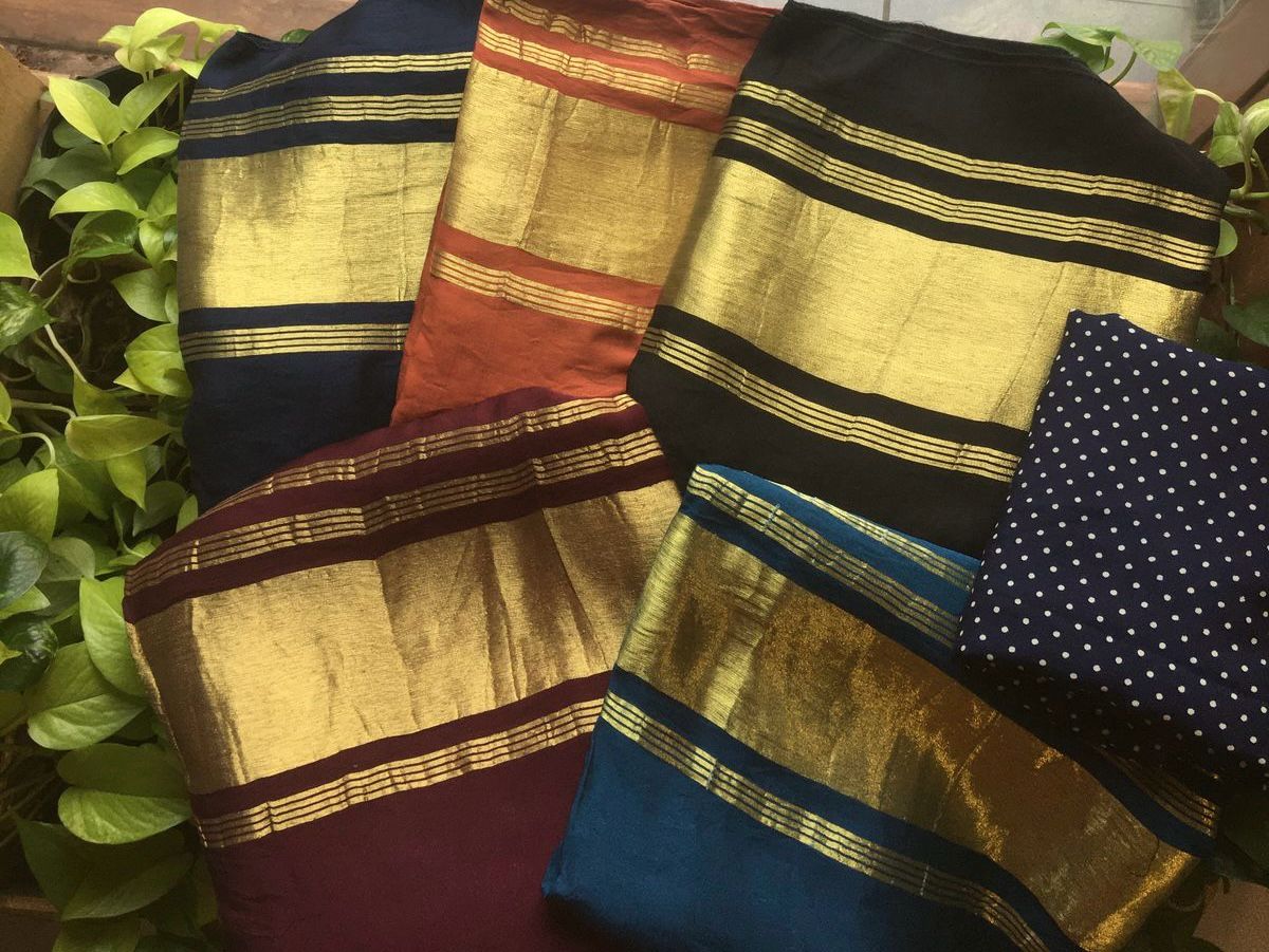A beautiful collection of Tussar silk sarees with very elegant check weaving on entire saree & borders finished with beautiful cross stitch reminiscent floral embroidery. With blouse pure Benarasi silk