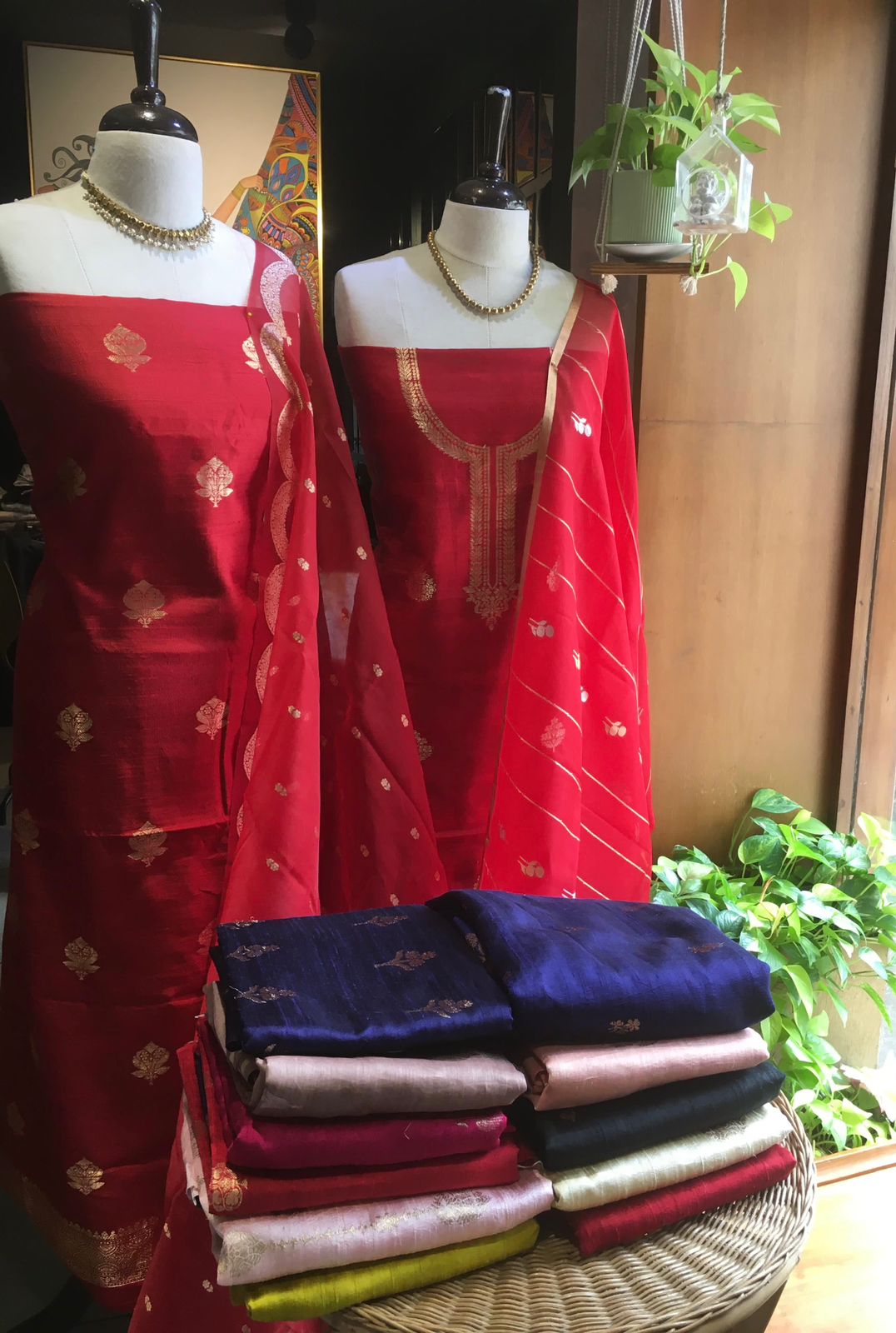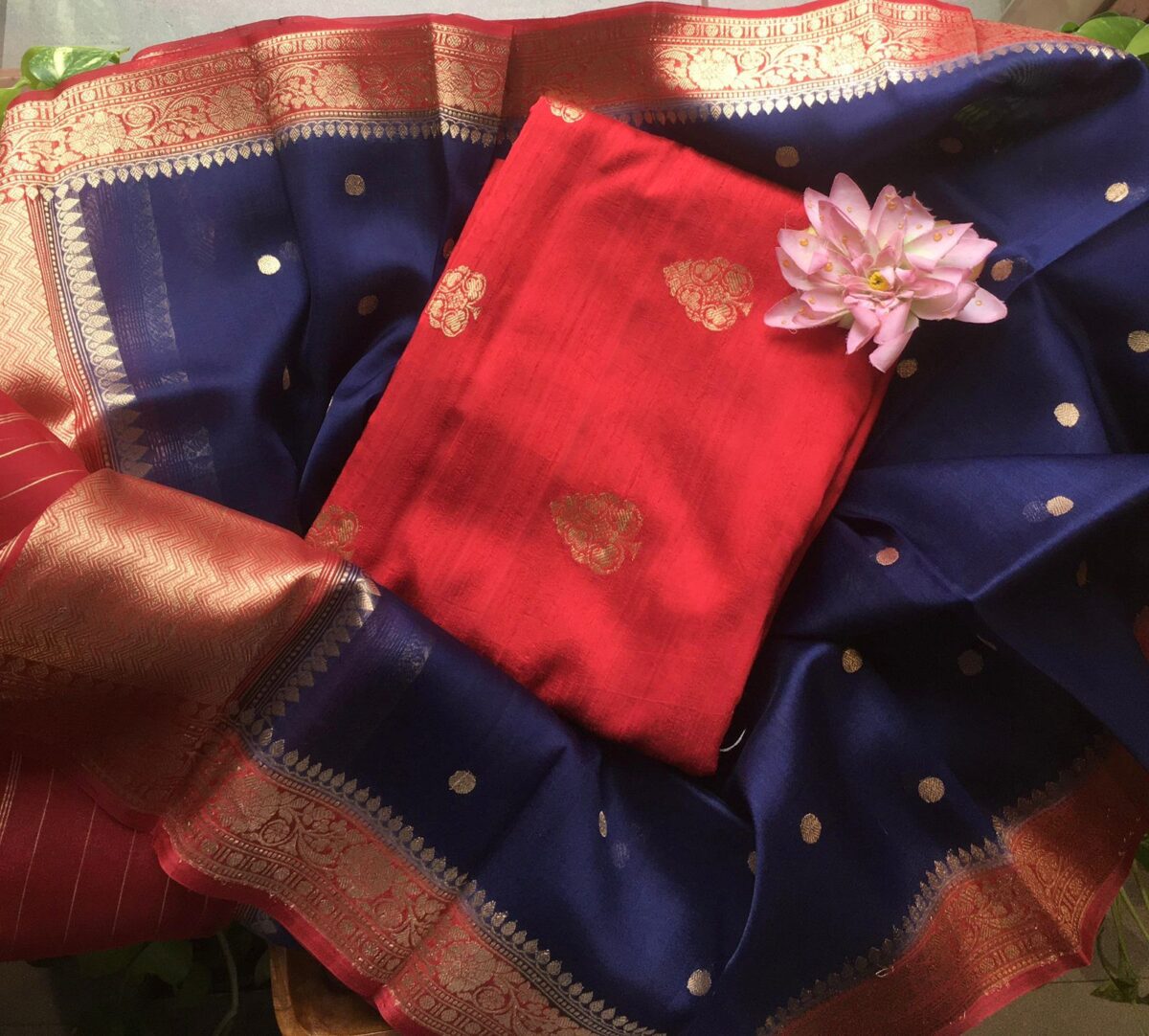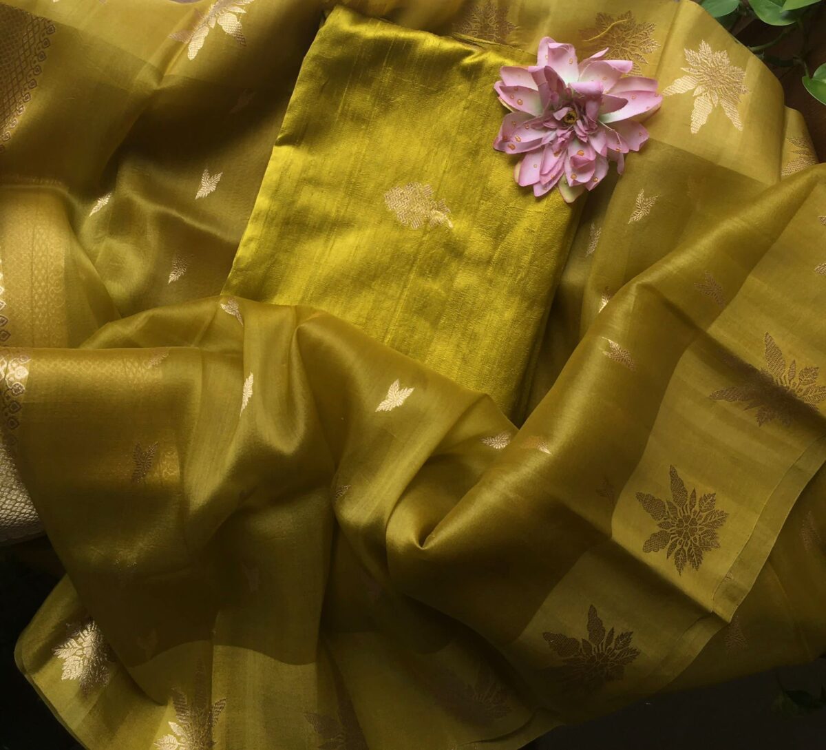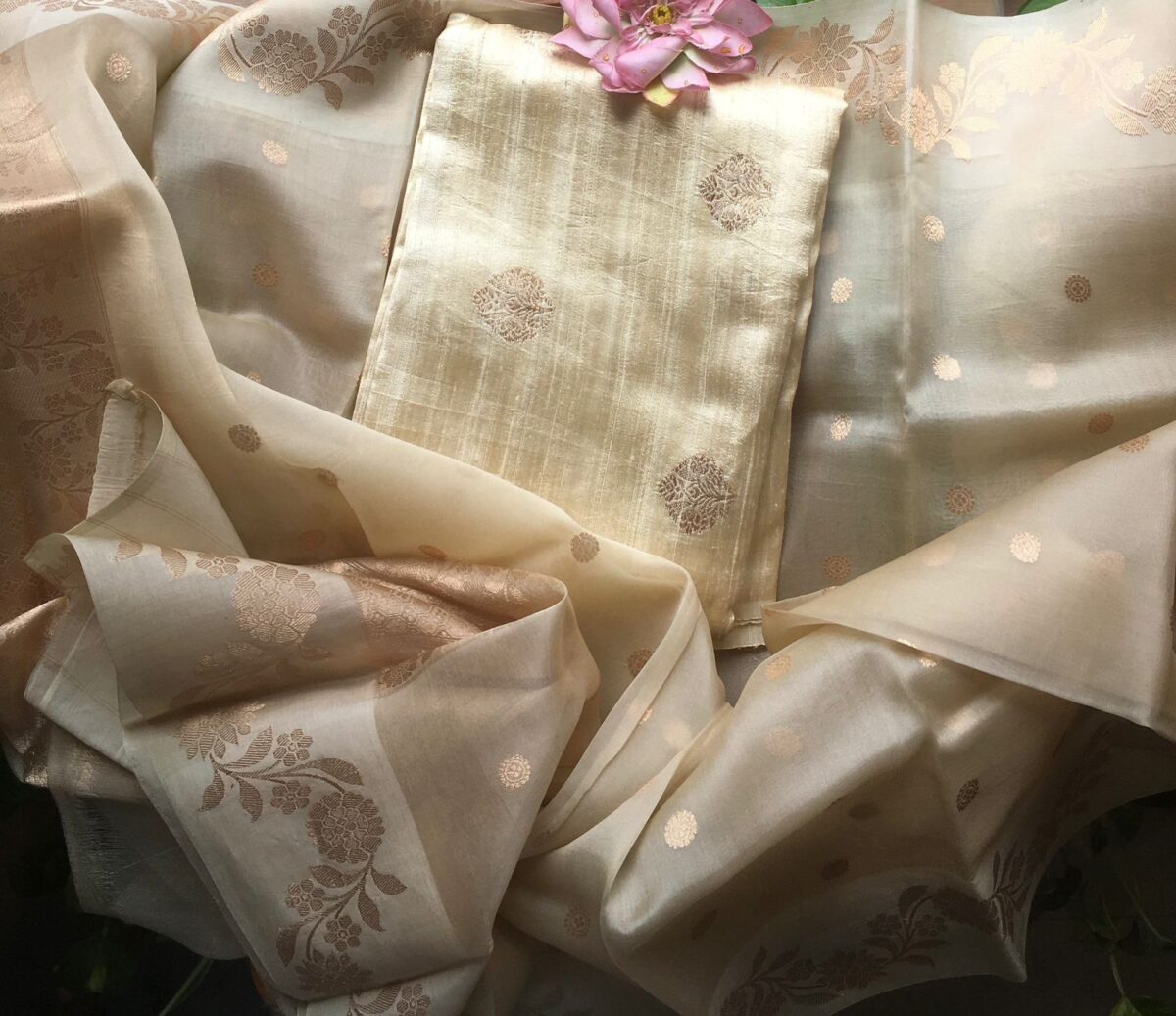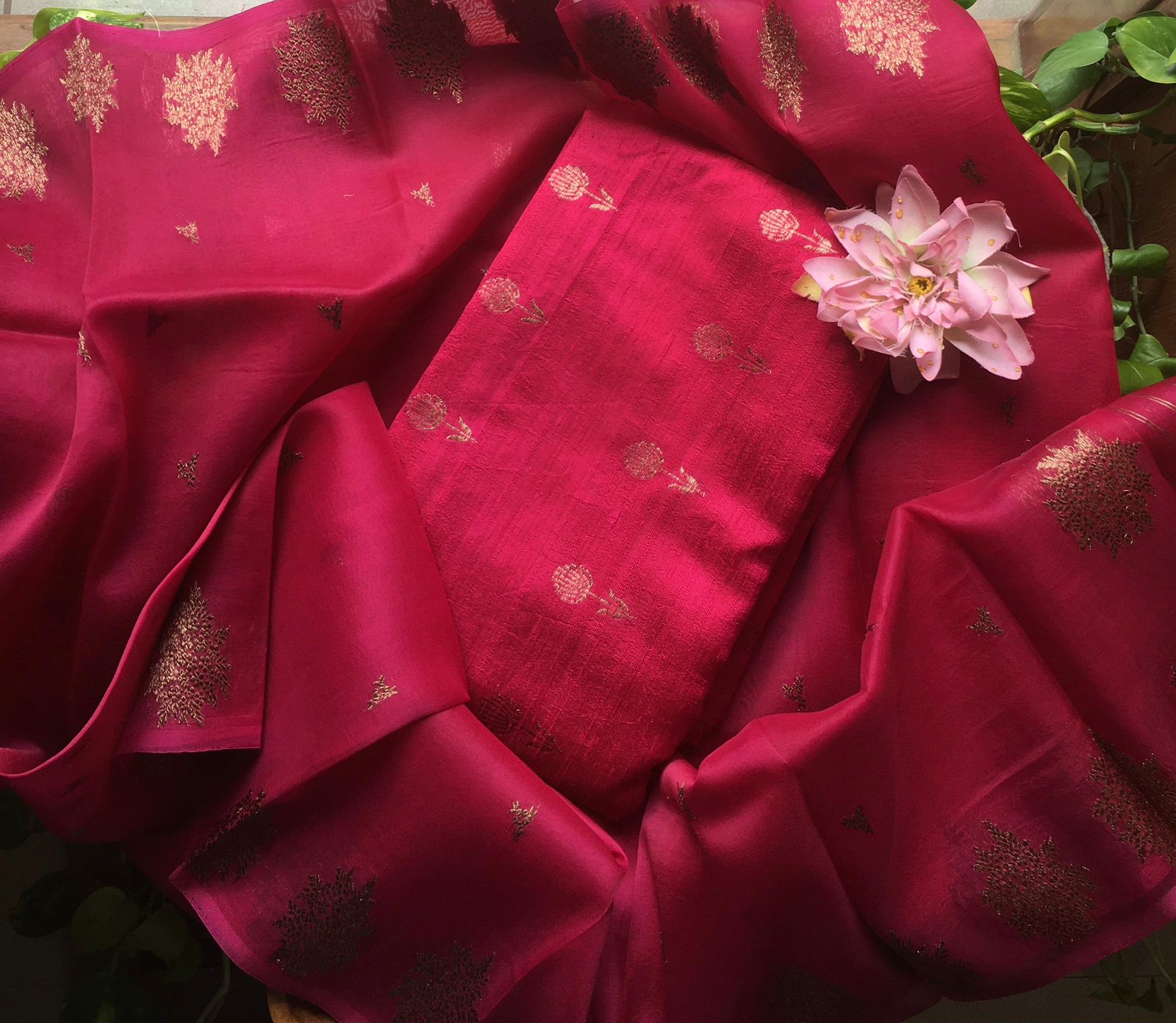 A beautiful & Exclusive collection of Premium Pure Raw Silk top & bottom (can be stitched as another top ) & pure silk organza Duppatta with khadwa hand weaving. The highlight of these suits are the stunning colors & the beautiful hand weaving reminiscent of Kanchivaram weave !