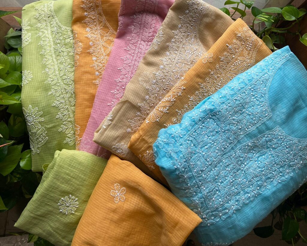 A beautiful premium collection of Pure Kota Doria top & Duppatta with beautiful Lucknow Chikankari embroidery all over., no bottom. Can be customised if required