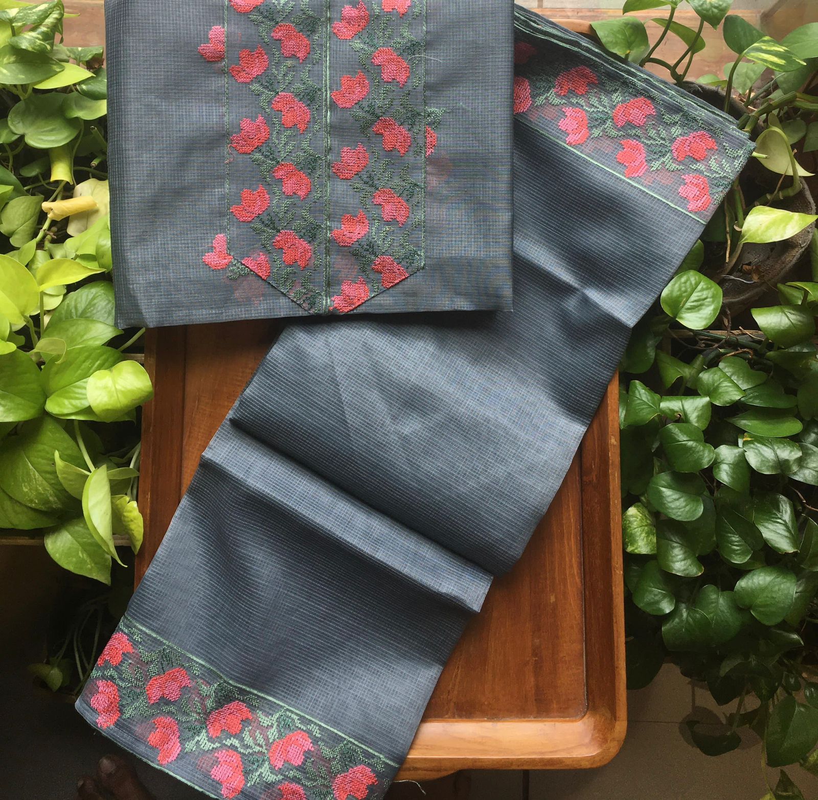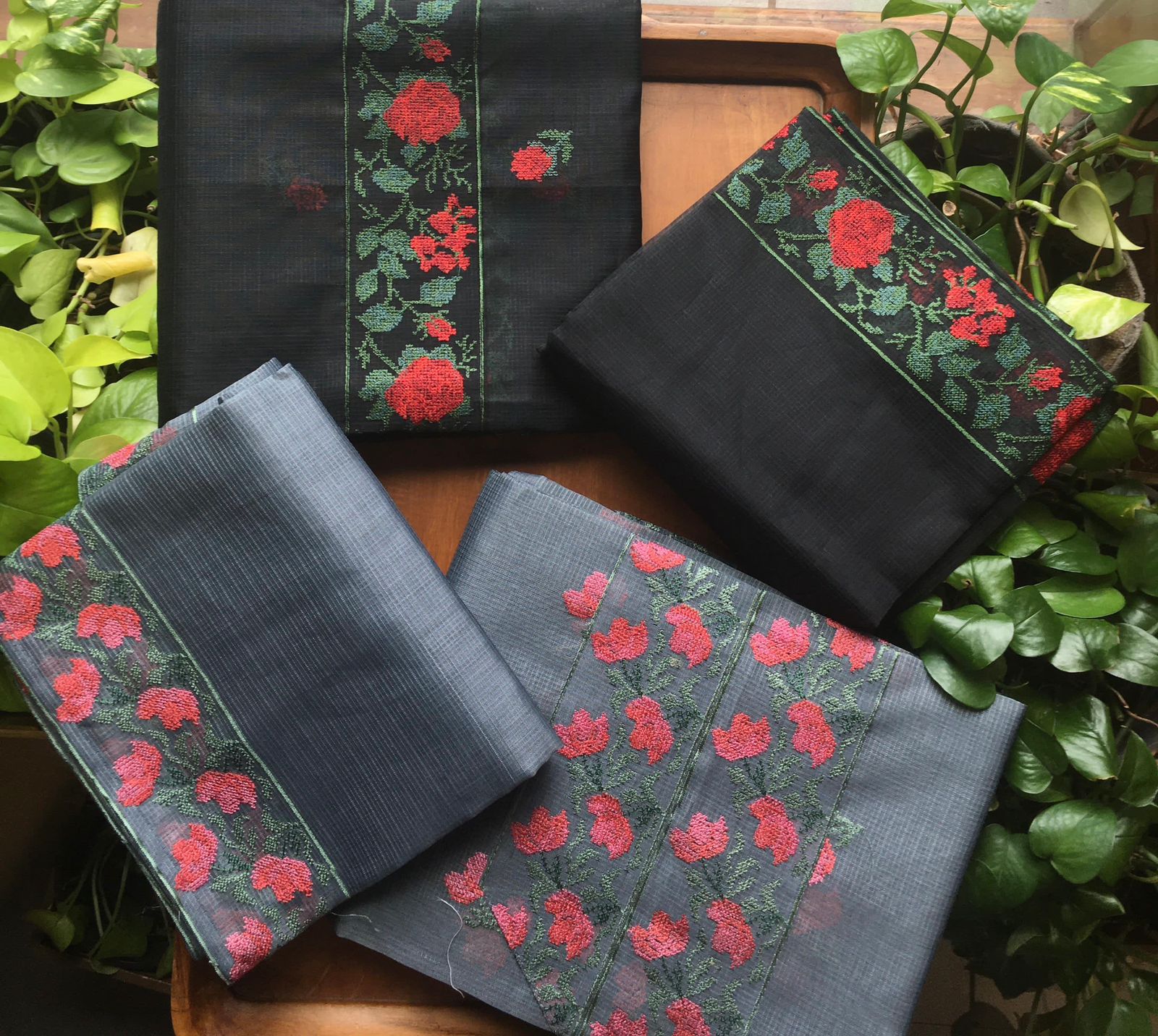 Are you looking out for a Beautiful & classy Linen Cotton Suits to add to your wardrobe ? These suits with intricate embroidery & floral prints are the perfect choice! Pure Linen cotton top with pretty floral prints & embroidery, santoon bottom & linen Duppatta with floral prints & silver Zari embroidery