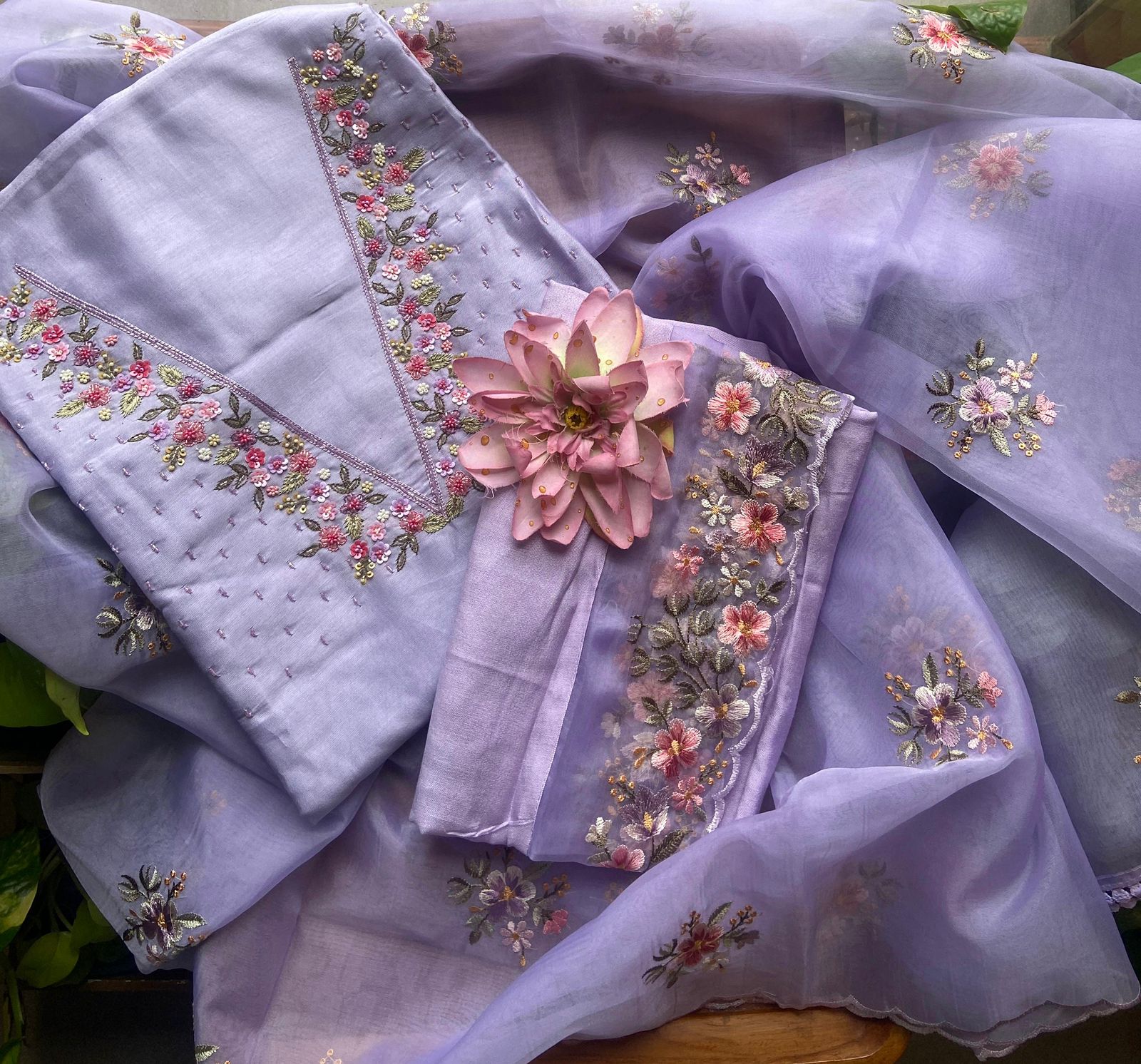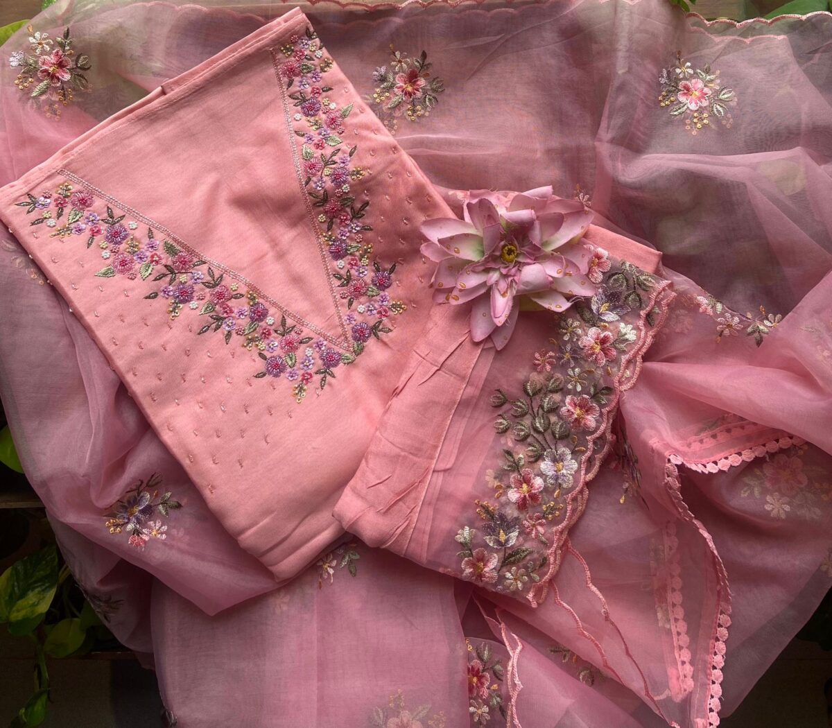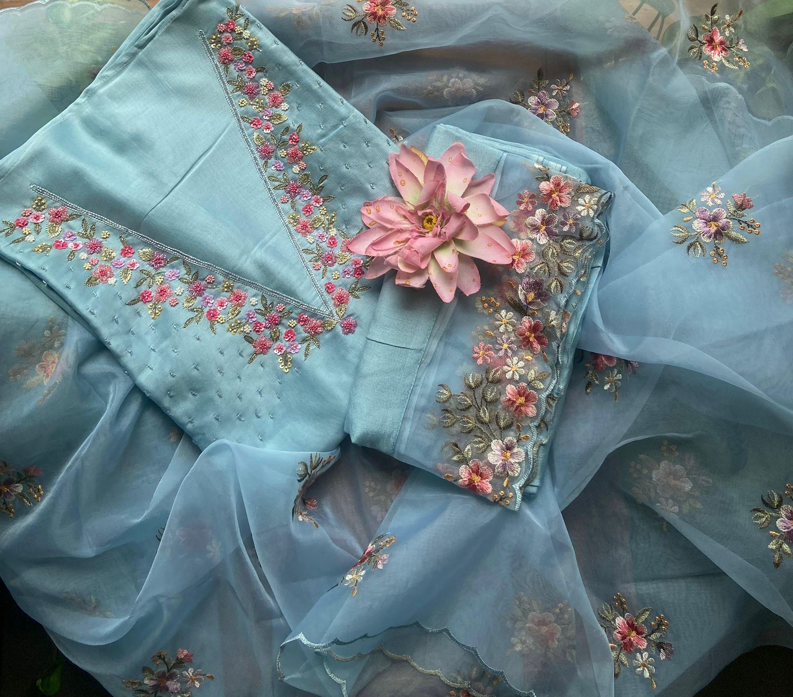 A Beautiful & premium pure viscose organza top & Duppatta with exquisite hand embroidery featuring bullion knots! Santoon bottom