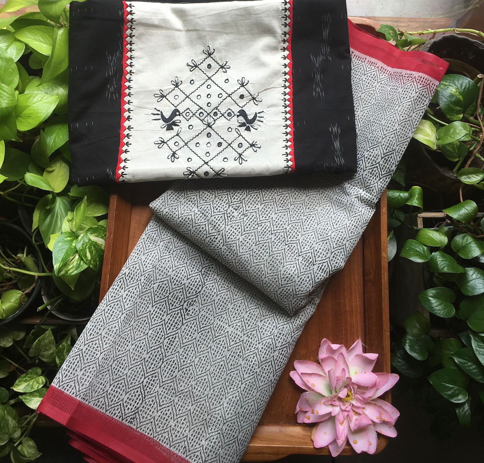 Presenting out Brand New Collection for Onam at a Special Price of ₹1499/- curated on Chiffon woth Cutwork and beautiful floral embroidery! Ethereal hues of Pink, Pearl Green, Ivory gold, Dusty pink & Jet black on Chiffon top and Duppatta with floral embroidery & Cutwork. The floral embroidery design is created to resemble pearl embroidery. Bottom is cotton silk