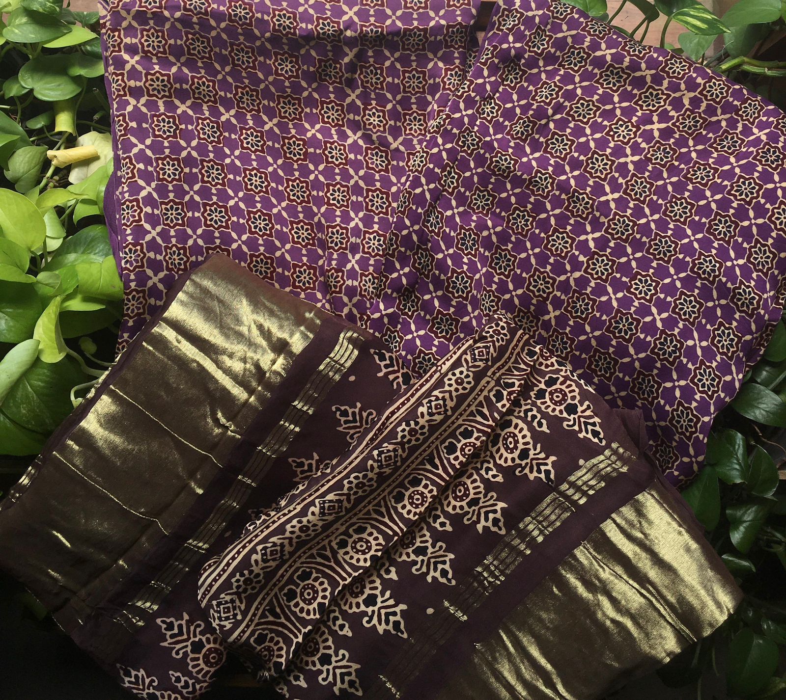 A beautiful premium collection of pure viscose georgette top with stunning Benarasi fabric designed on yoke & sleeves ( The suit is unstitched with all designer detailing done & has to be stitched as per measurements) , santoon bottom & pure chiffon badla Duppatta Dispatch time 5 days