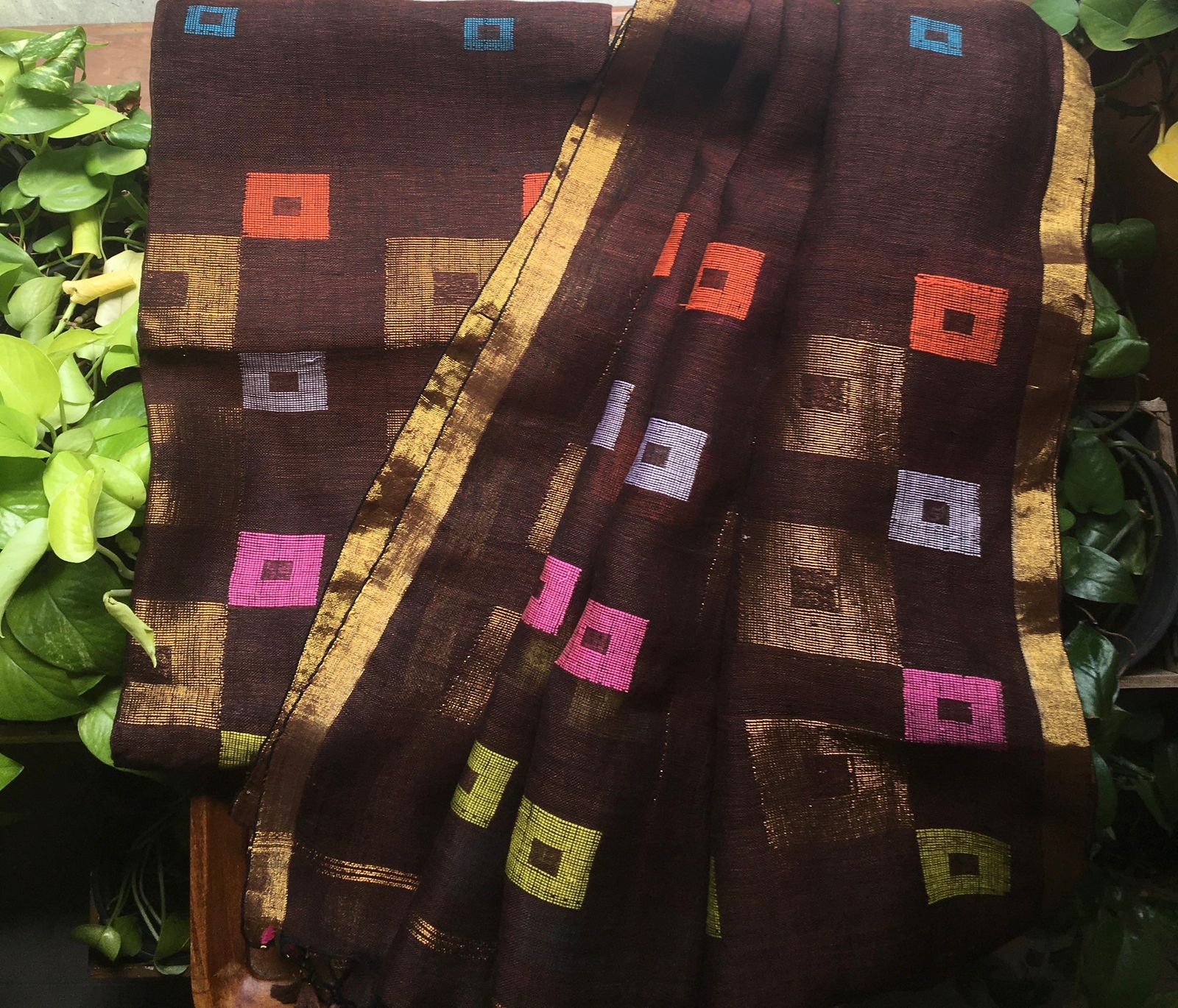 HomeSalwar Set A beautiful premium collection of Pure Premium Linen Silk Top & Duppatta with stunning Jamdhani hand weave . No bottom