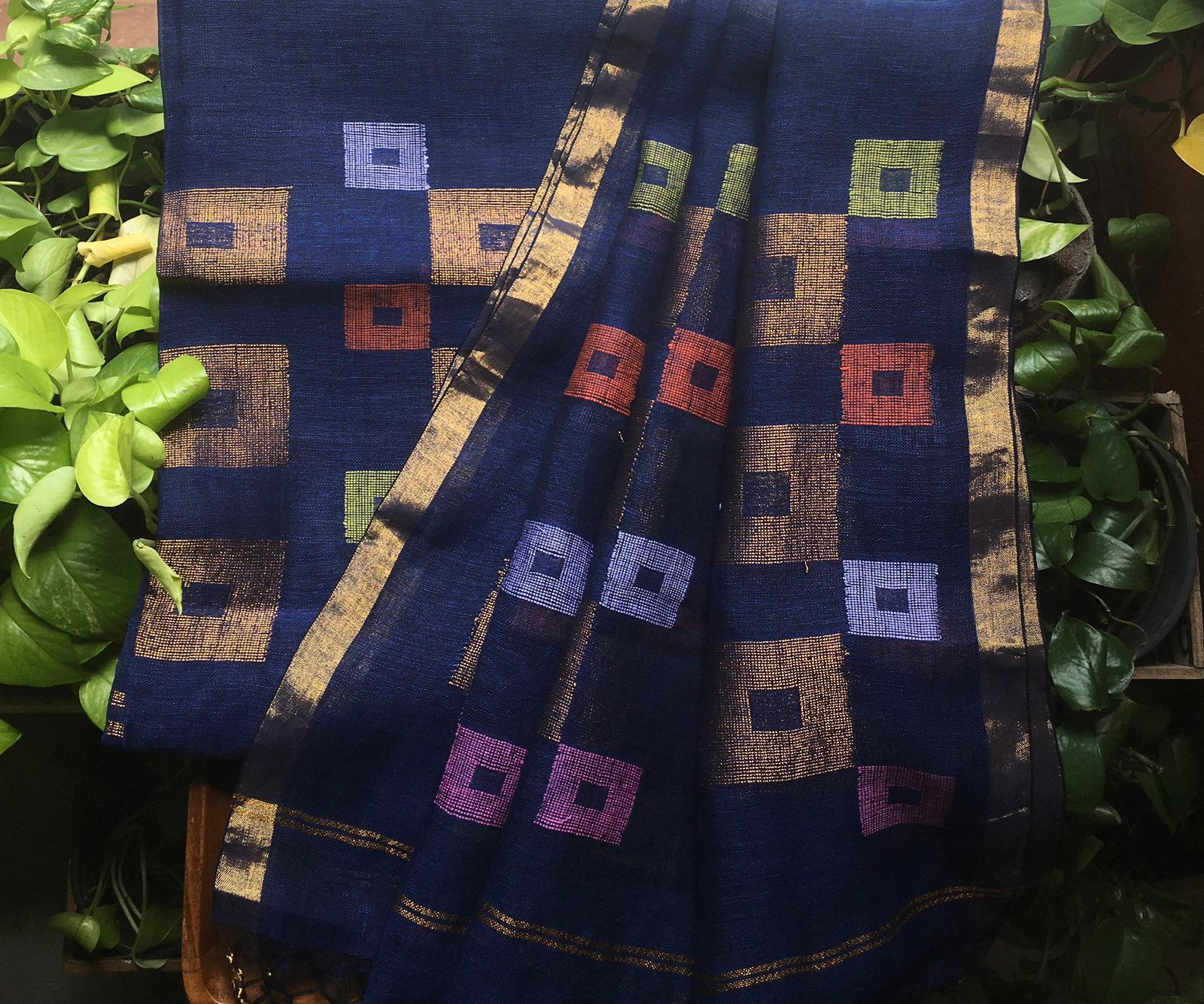 A beautiful collection in pure linen top and Duppatta with silver Zari borders & exquisite hand embroidery & cotton bottom