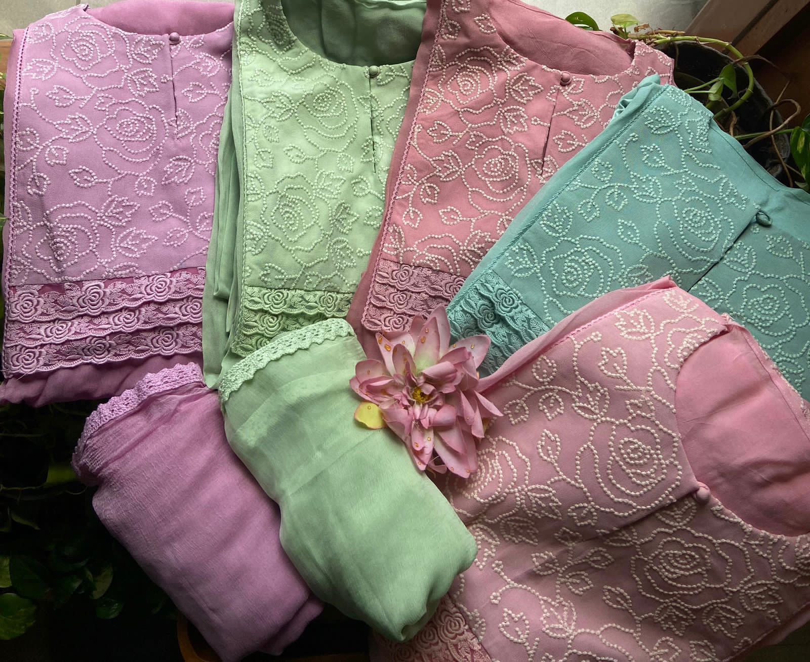 | Color | Dusty Pink, mint green, Onion Pink, Peachish Pink, Pearl Green |
